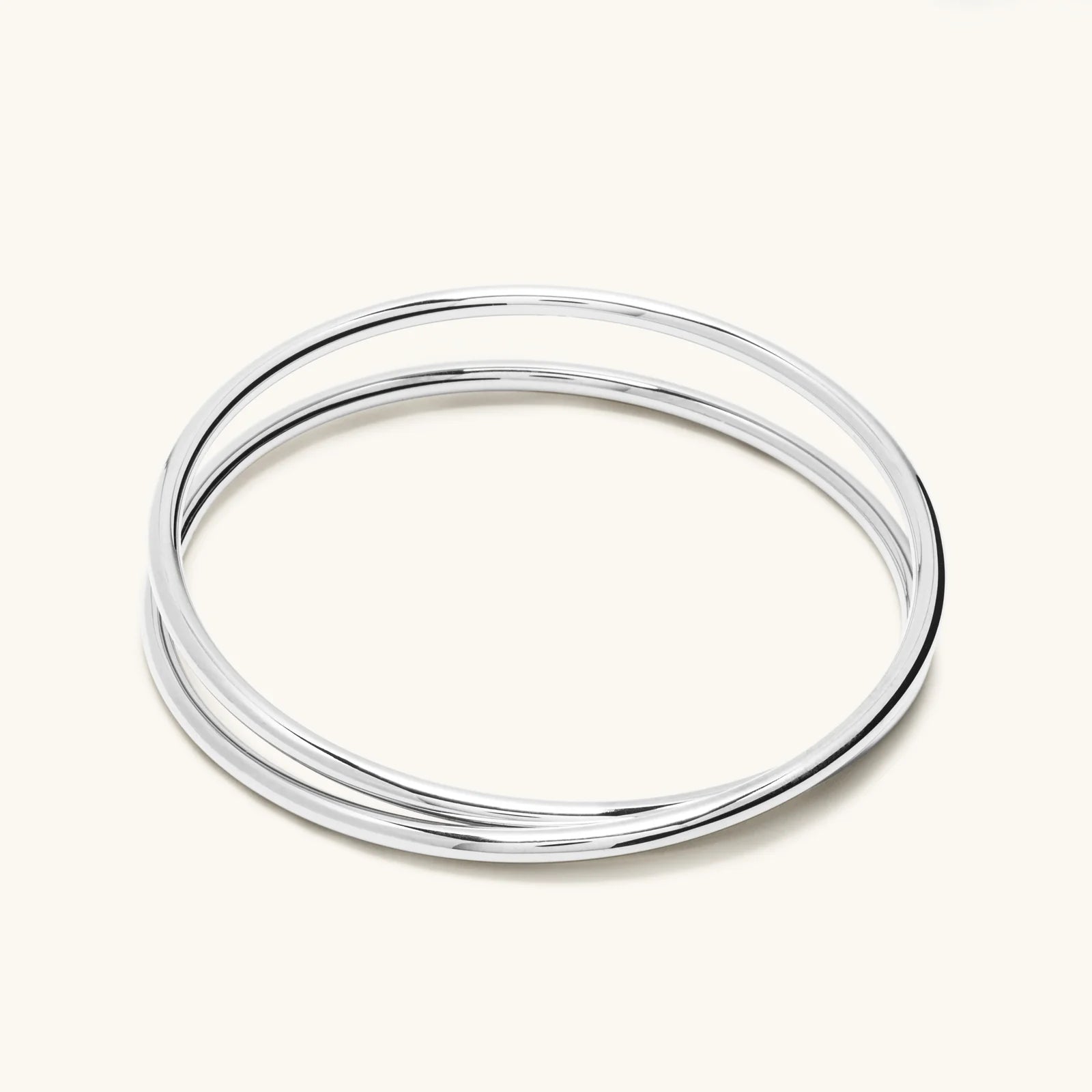 Closed spiral bangle in solid 925 silver, 3mm thick, which wraps around itself endlessly.
