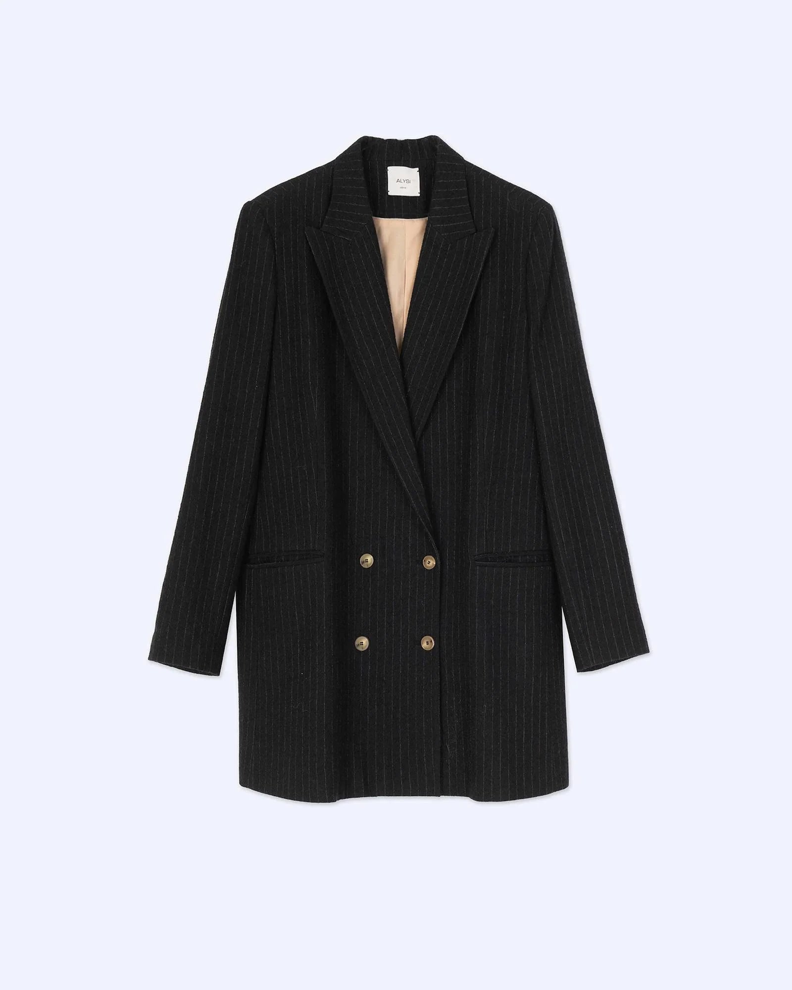 Introducing the Alysi Blazer 154909! Made from 100% virgin wool, this blazer features a stylish herringbone pattern and peak lapels. The functional flap pockets add convenience, while the contrasting resin buttons give it a modern touch. Elevate your look with this versatile and luxurious blazer.