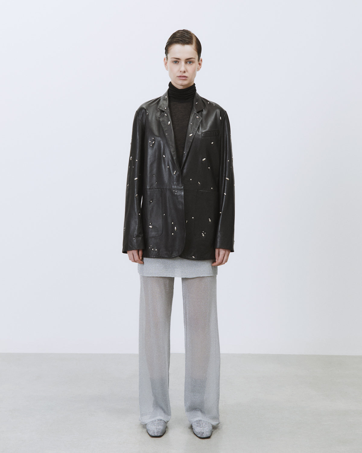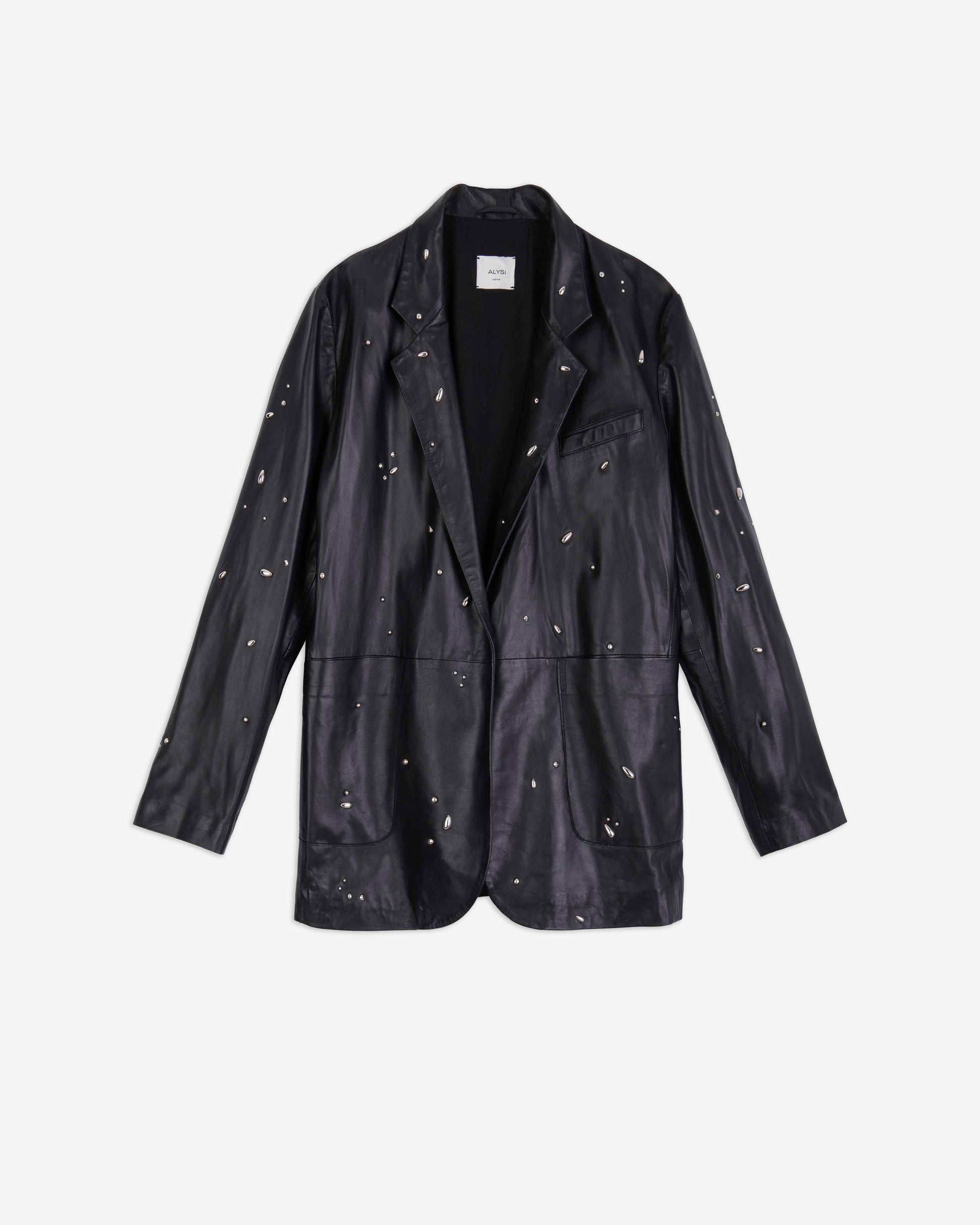 The Alysi Fancy Blazer 265802 is a luxurious leather blazer that combines sharp tailoring with premium craftsmanship. Designed to deliver a polished and sophisticated look, this blazer enhances your wardrobe with its structured fit and refined details. Ideal for elevating both professional and evening ensembles, it offers timeless style with a modern edge.