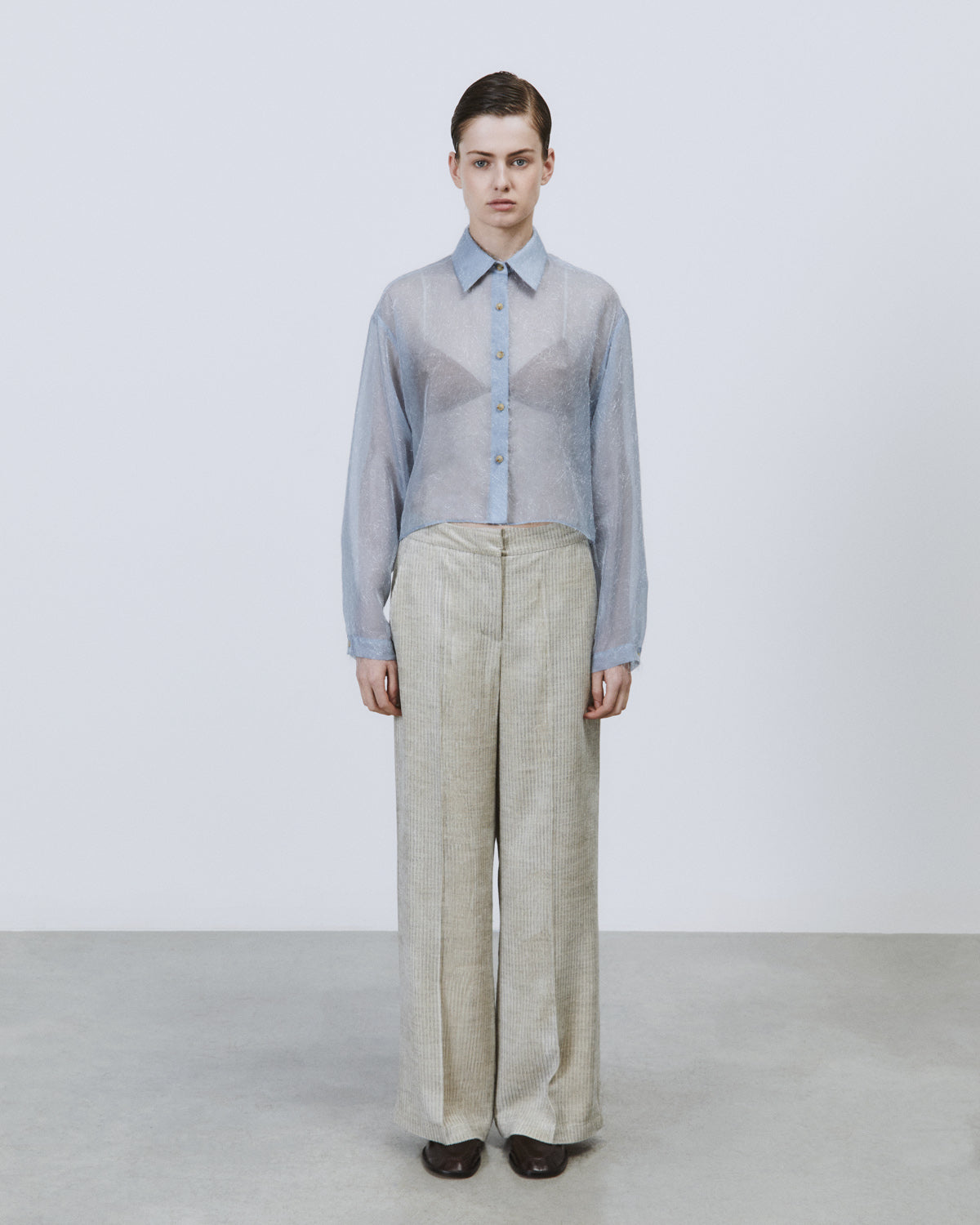 The Alysi Organza Blouse 165219 features delicate organza fabric that creates a lightweight, airy feel with a subtle sheen. Designed with a cropped silhouette, it offers a modern, flattering fit. The plume-inspired details add a touch of elegance and texture, making this blouse a refined choice for sophisticated styling and layering.