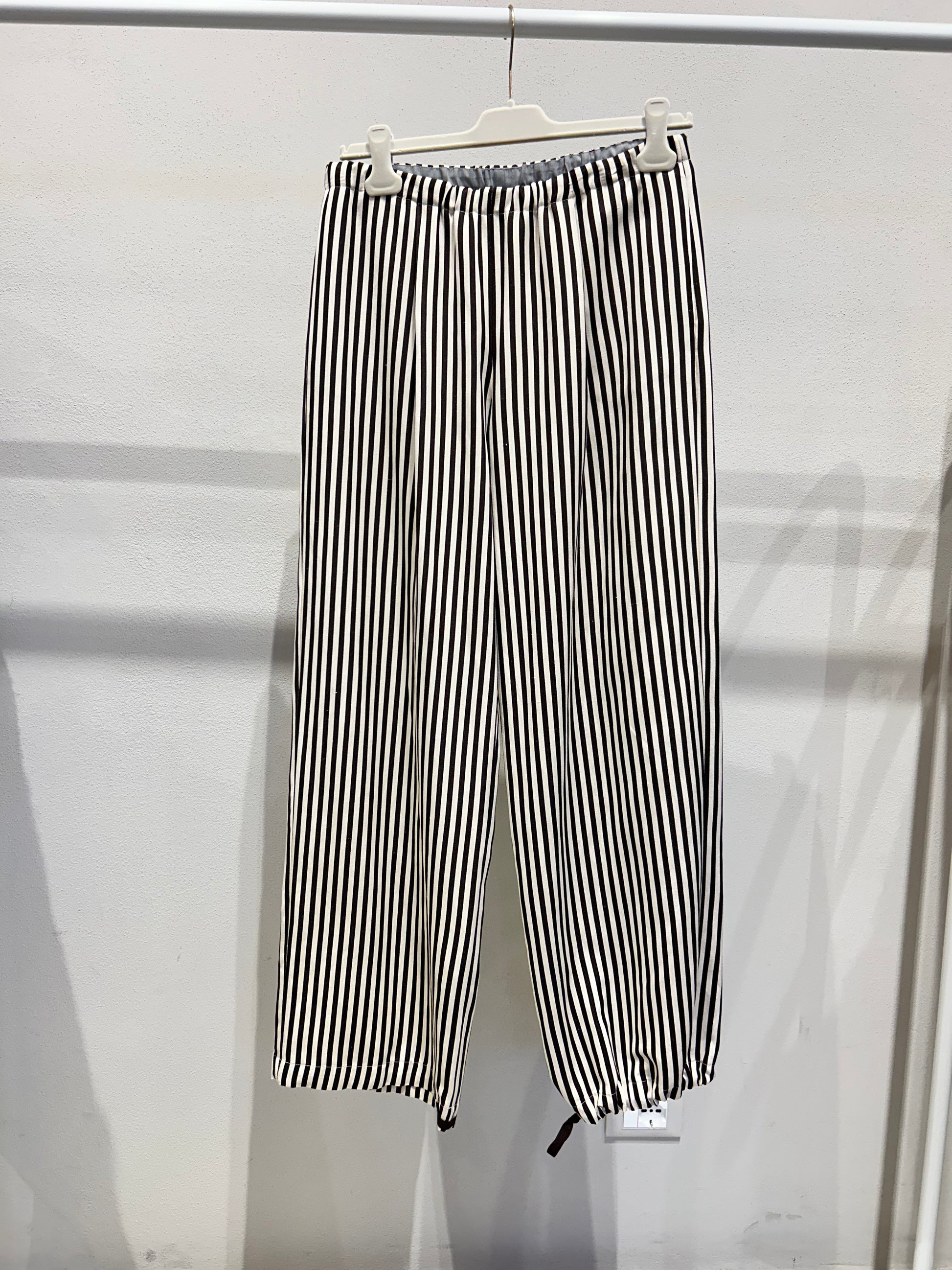 Flowing palazzo trousers crafted from a refined viscose and linen blend. The subtle stripe pattern adds visual interest to this versatile silhouette, while the breathable fabric composition ensures comfort throughout the day. A sophisticated staple for elevated, effortless styling.
