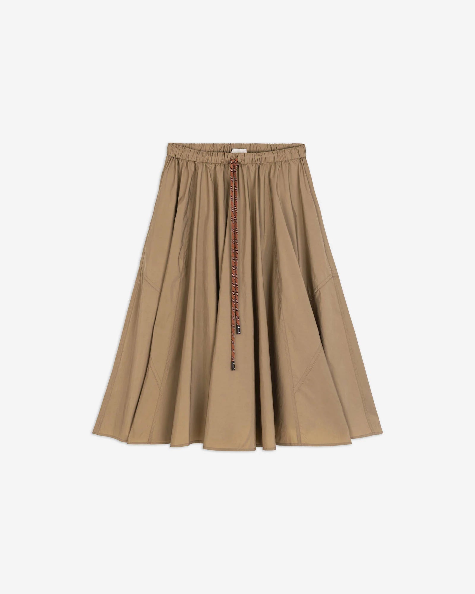 Sleek midi silhouette crafted from nylon-effect fabric with a contemporary wheel design. The elasticated waist ensures comfortable wear, while functional side pockets add practicality to this refined piece. Finished with a contrasting drawstring lace detail that elevates the minimalist aesthetic. Composition: 59% nylon, 41% polyester.