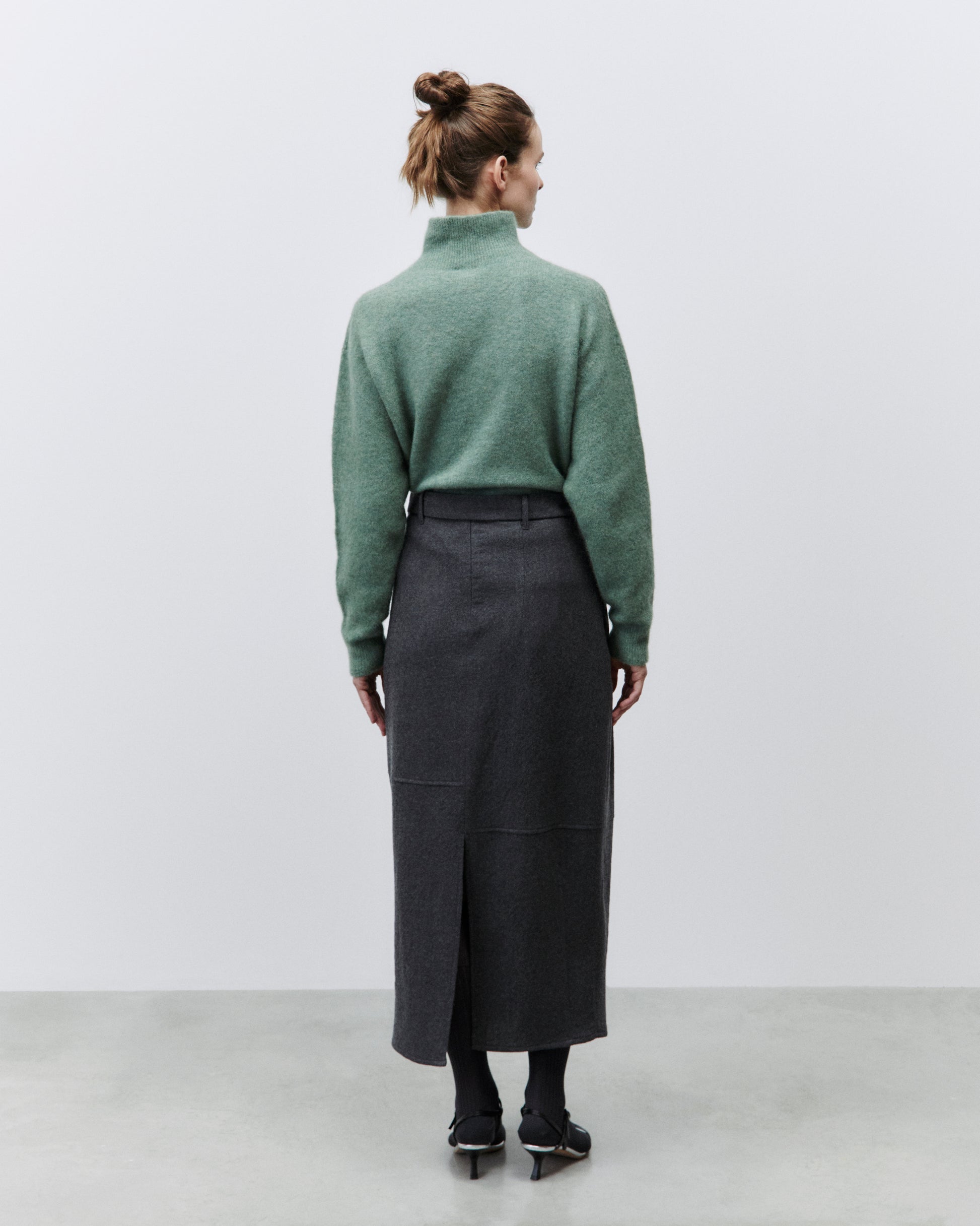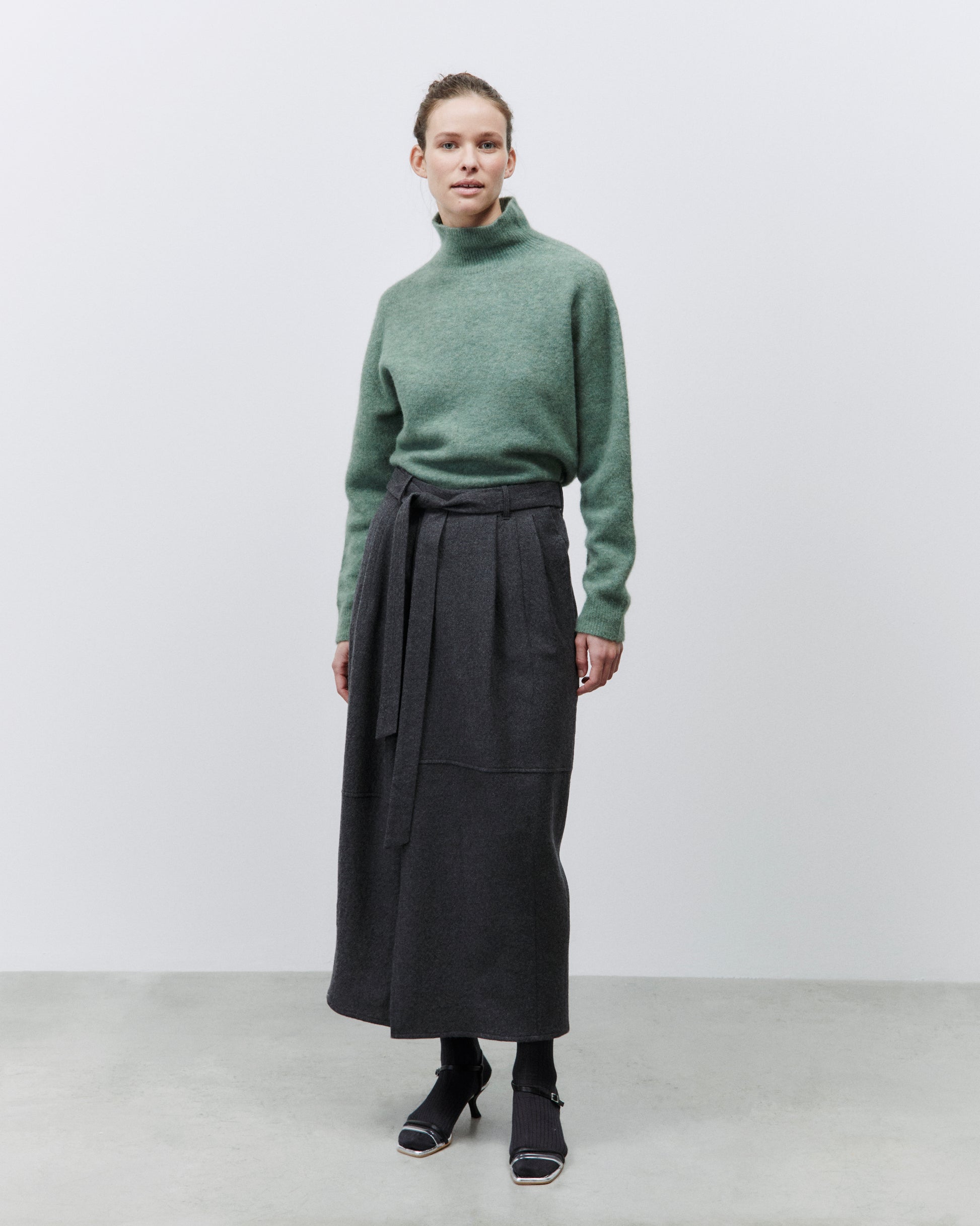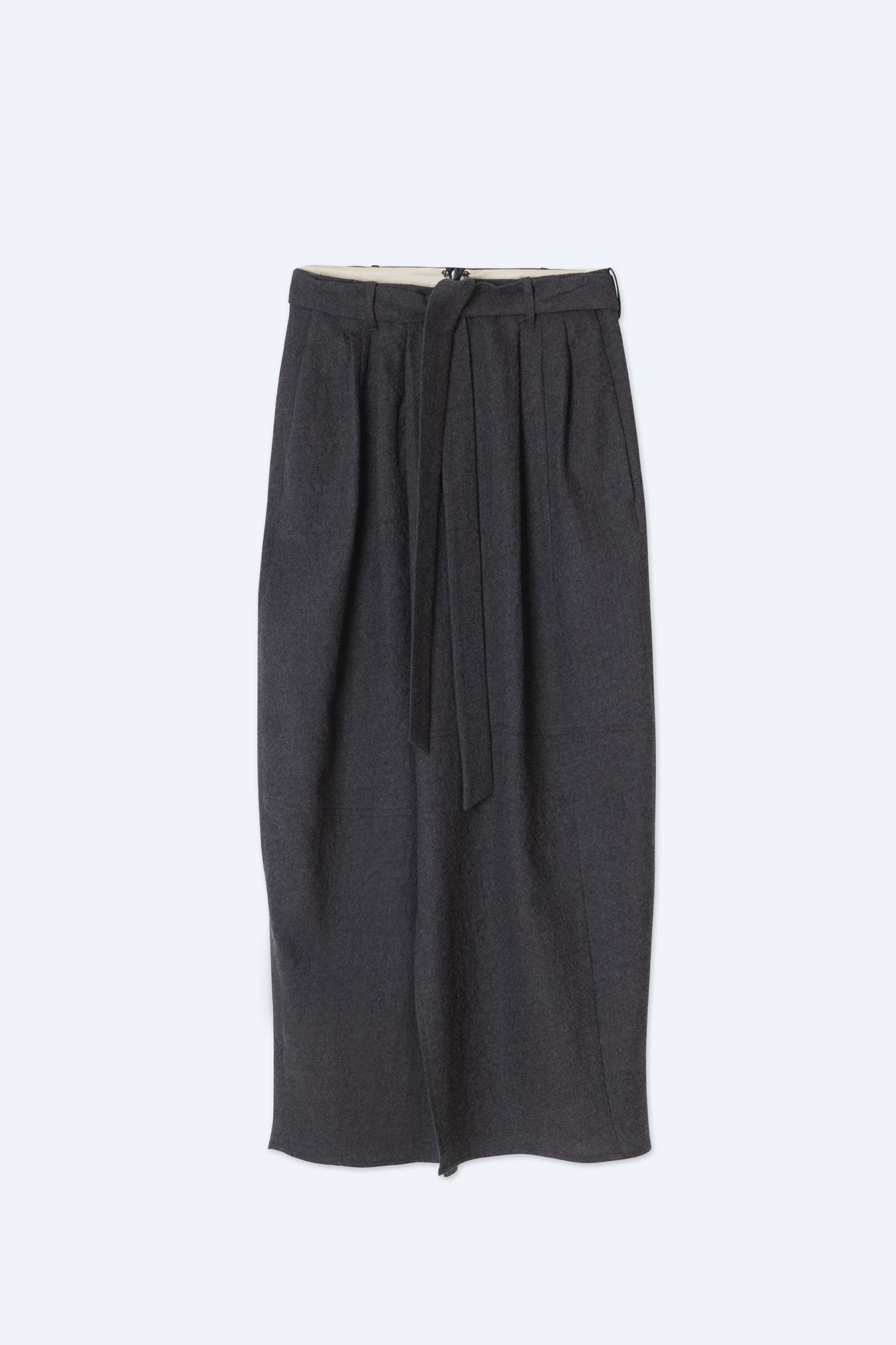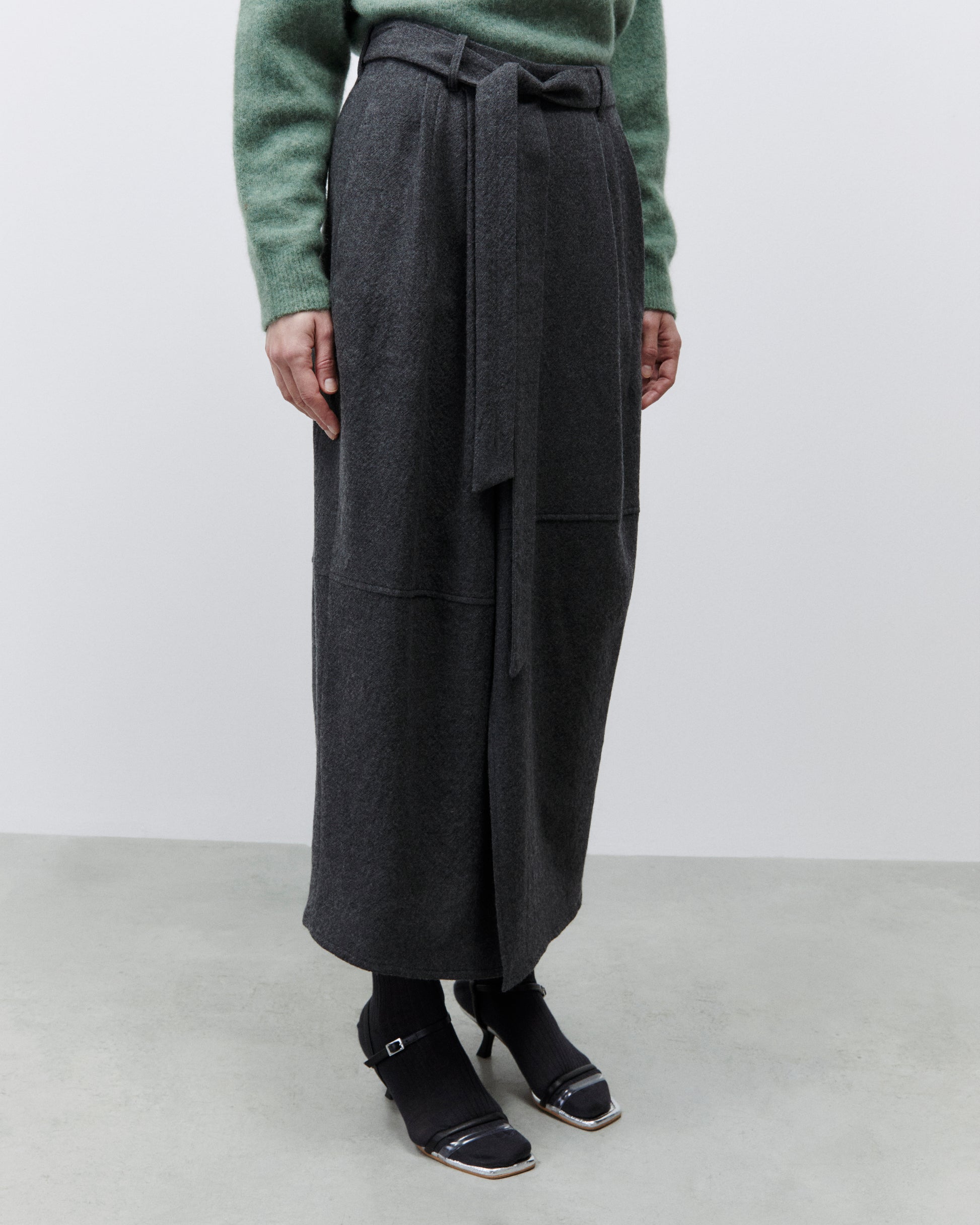The Alysi Skirt is a must-have for any fashion-forward individual. Made from 100% virgin wool, this lounge skirt boasts asymmetrical cuts and front pence for a unique and chic look. Complete with a matching belt, this skirt will elevate any outfit.