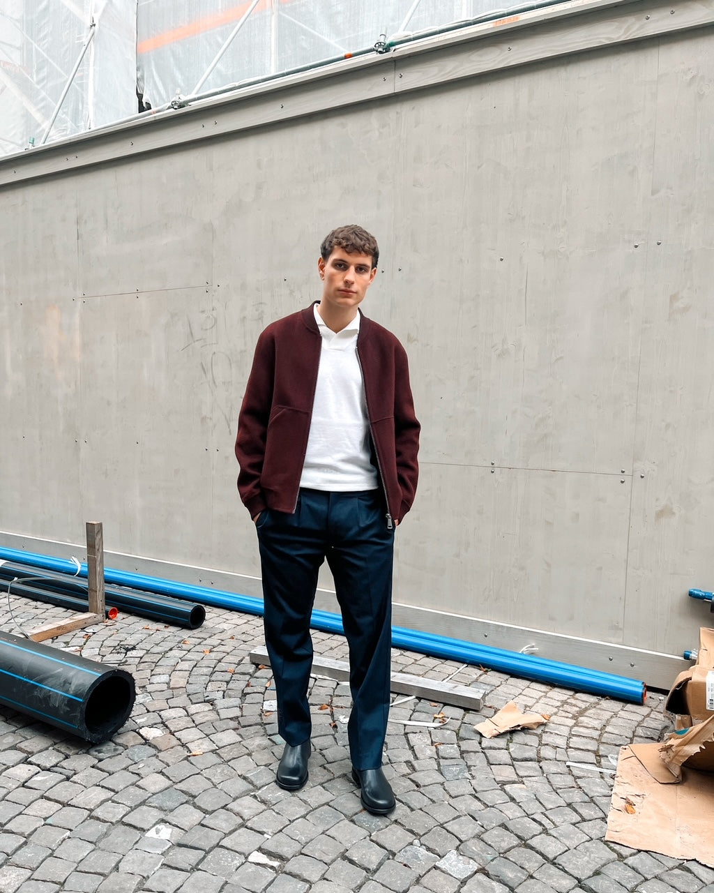 The AMARÁNTO Bomber Jacket B6F0011 by Melanzana combines timeless design with premium comfort. Crafted from 100% wool, it offers exceptional warmth and breathability. Its ribbed trims ensure a flattering fit while the zip fastening allows easy wear. Practical side pockets provide storage without compromising style. With long sleeves and a sleek bomber silhouette, this jacket delivers refined versatility ideal for cooler days.