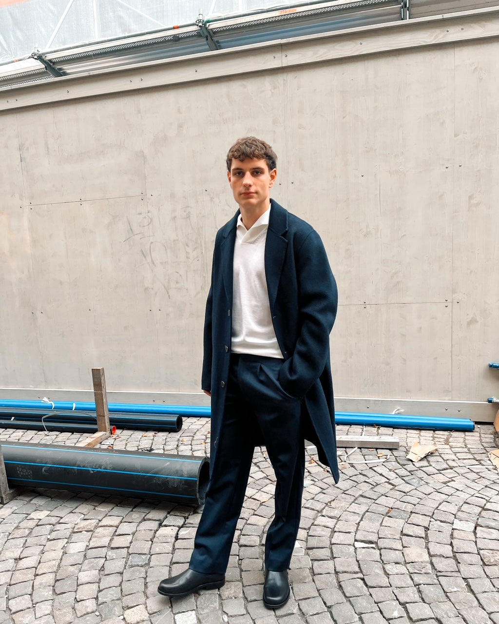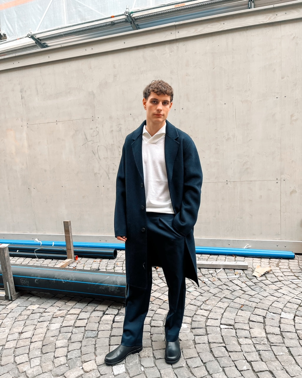 This single-breasted coat in a sophisticated blue shade features classic notched lapels and a front button fastening for a refined silhouette. Crafted from a luxurious blend of 90% wool and 5% cashmere, it offers exceptional warmth and softness, complemented by long sleeves and practical front flap pockets for added functionality. Perfect for elevating your outerwear with expert craftsmanship and timeless style.