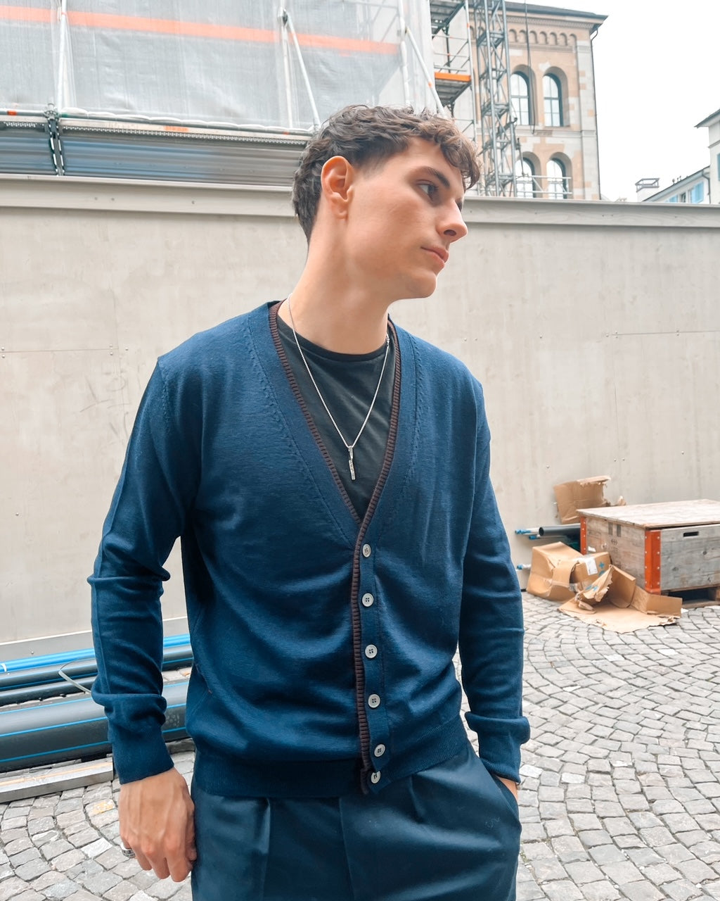 This AMARÁNTO B9F0033 Cardigan 433, crafted from 100% wool, offers exceptional warmth and natural breathability, making it an ideal choice for both comfort and style. Its high-quality wool fabric ensures durability while providing a soft, luxurious touch against the skin. Perfect for layering, this cardigan combines timeless design with expert craftsmanship to elevate your wardrobe essentials.