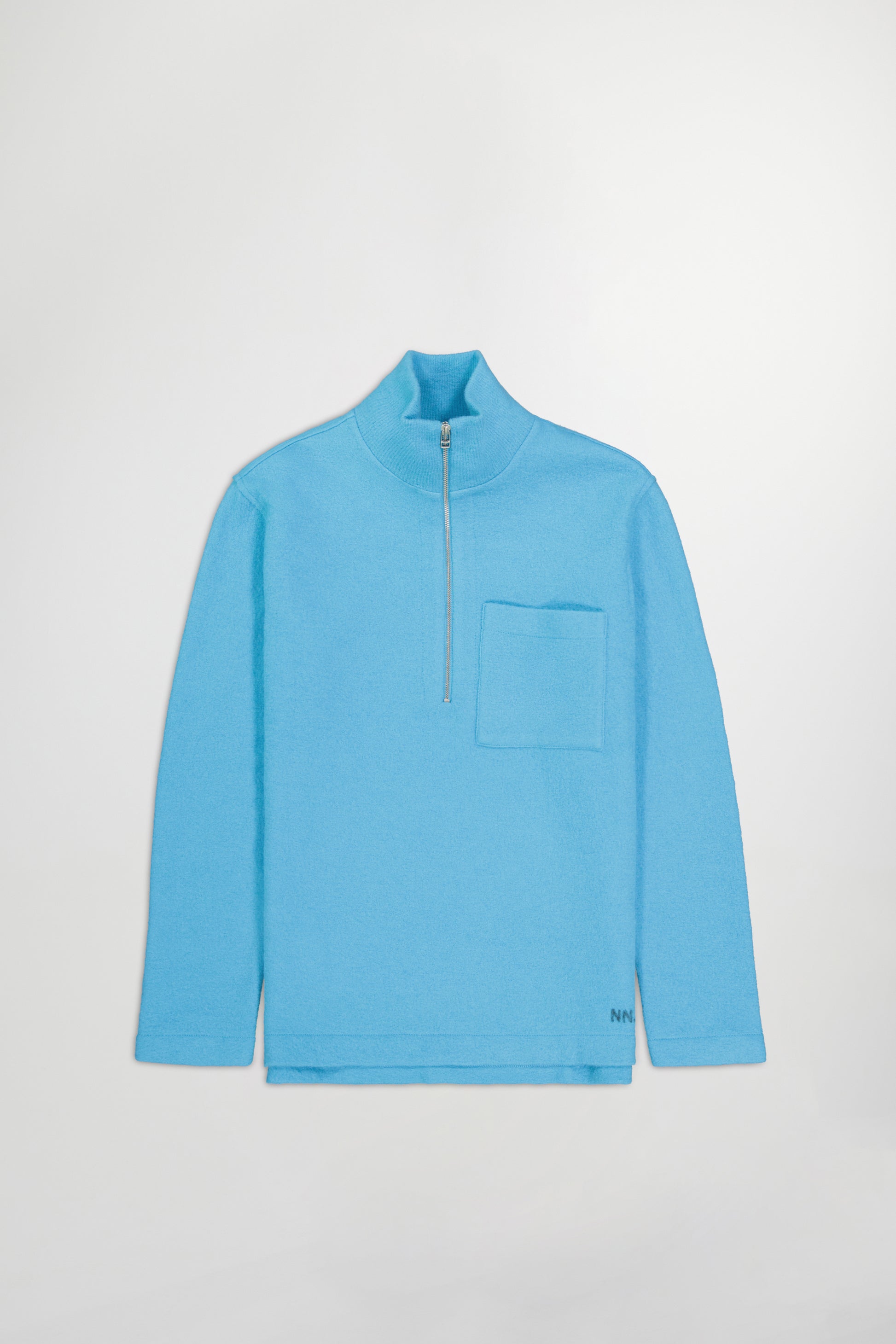 Go-to half zip sweater knit in a soft boiled merino wool. Features a chest patch pocket and a ribbed high neck.
