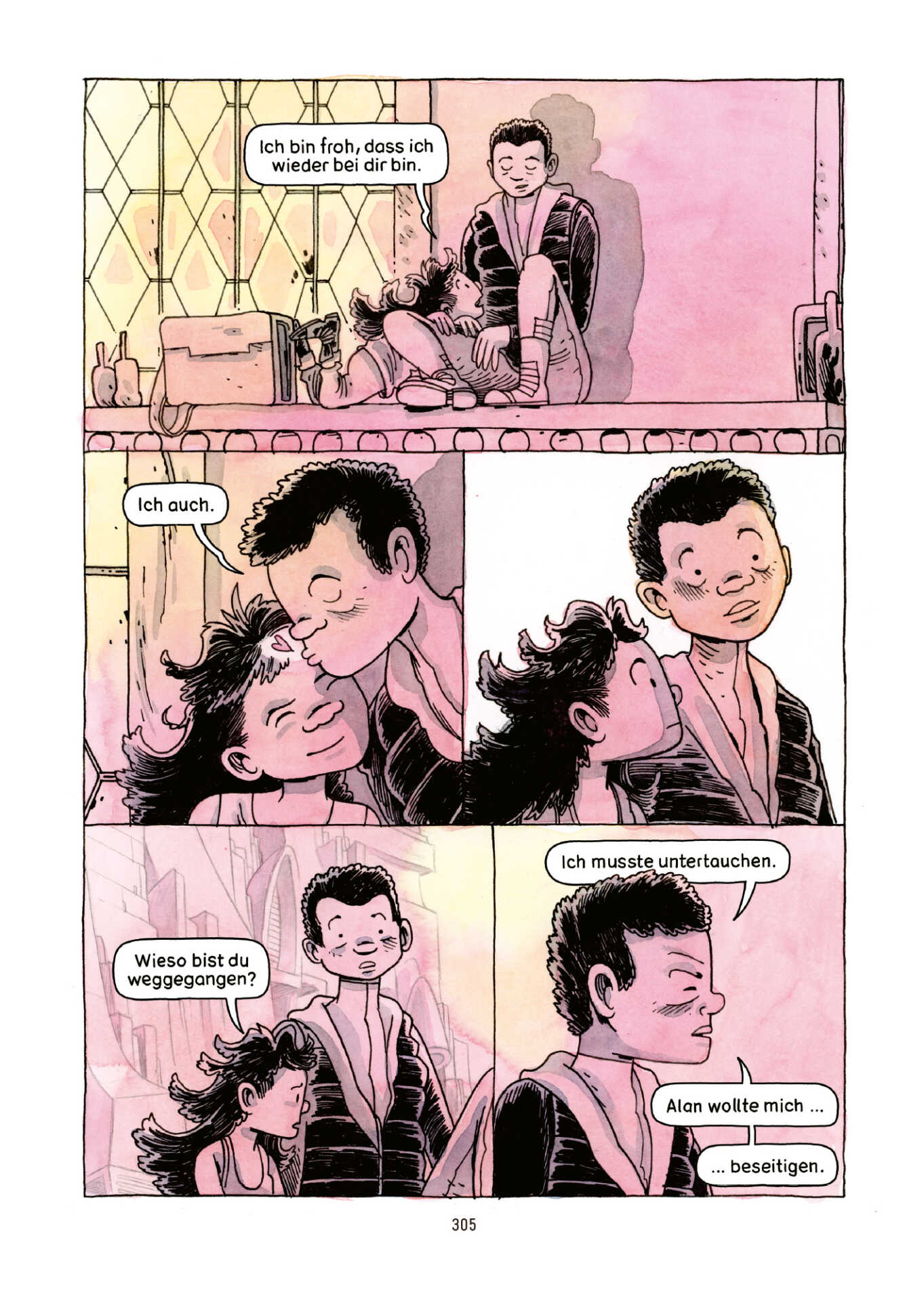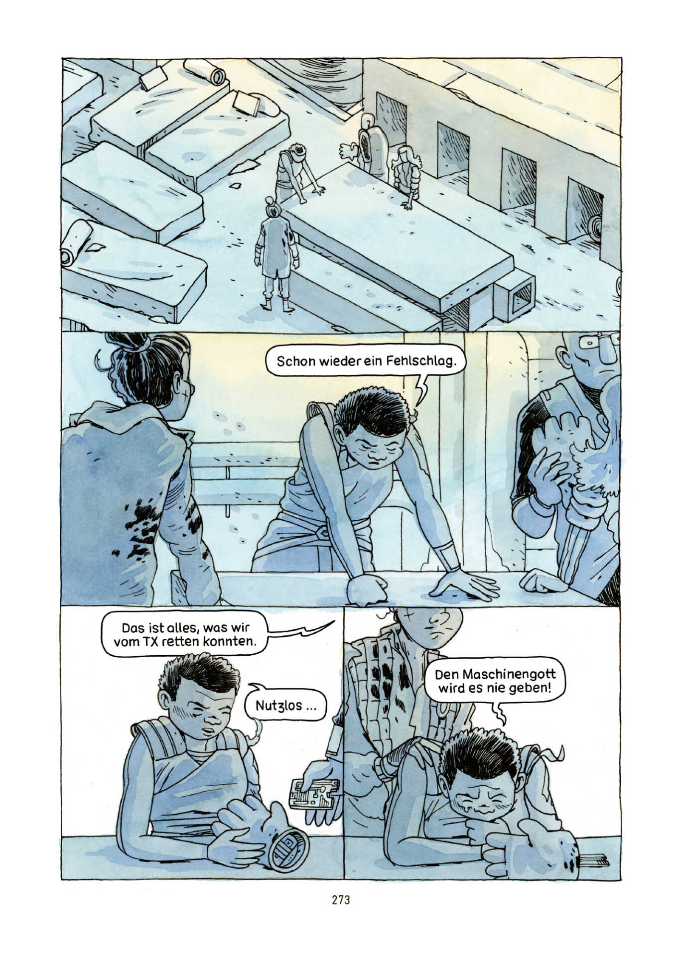 «Eine hochtechnologische Zukunft, in der künstliche Intelligenz den Menschen zu beherrschen droht. Andreas Kiener erzählt eine sprachlich wie bildsprachlich höchst feinfühlige und zutiefst menschliche Geschichte über die Suche nach Familie, Zugehörigkeit und Liebe, Schmerz, Verlust und Tod. Ein Sci-Fi-Epos, das auch in fünfzig Jahren nichts von seiner Aktualität eingebüsst haben wird.» — Walter Beer, Co-Mix Remix, Comic- und Plattenladen, Luzern