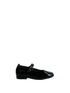 Arche SADBAA patent full-grain leather in silver-black, crafted in the Arche workshops in France. Features an instep buckle, premium patent calfskin construction, and a 1.8 cm flat sole in black Lactae Hévéa®. Black leather insole with signature Arche flexibility and unlined design for natural comfort and movement.