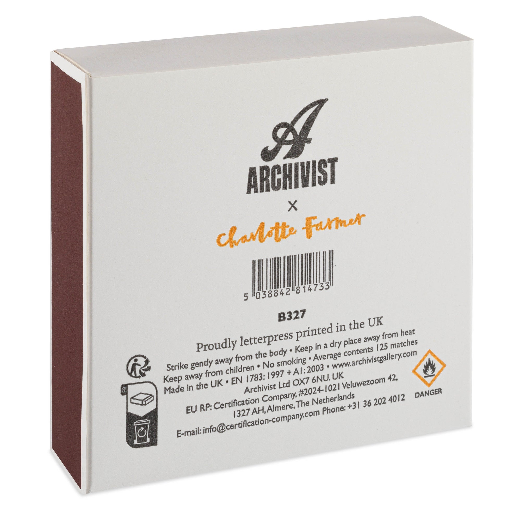 There are not many artists who might humour our design brief for this one, but lucky for us the wonderful Charlotte Farmer was able to draw the perfect cake. Swirls of buttercream and full of candles the one thing this cake calls for is a good old birthday job of making a wish and blowing them out... We're hoping this brings a giggle to someone special or someone who might just appreciate the clever wit of this matchbox!