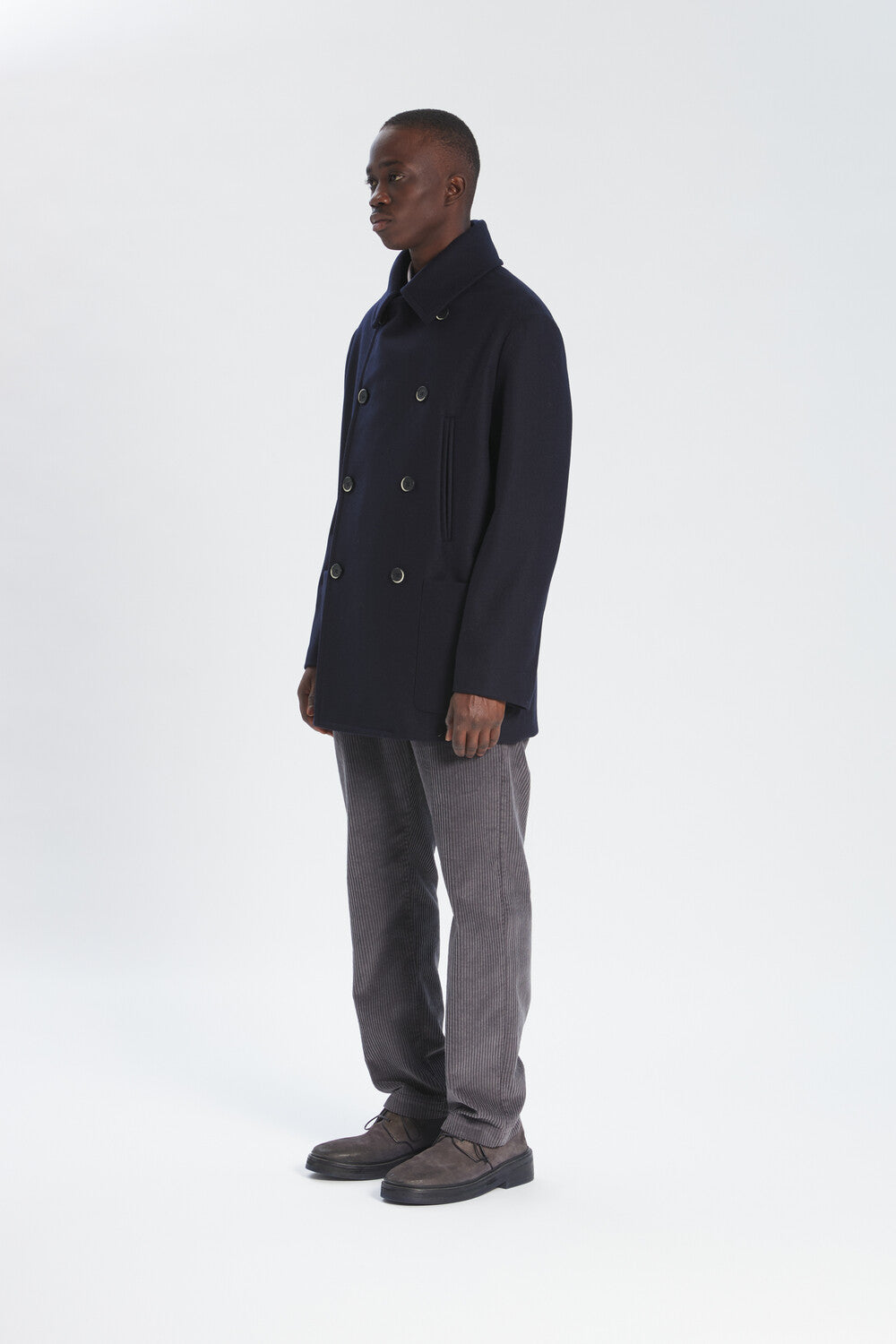 Crafted from Melton wool, in the Iconic Navy Barena, this marine-inspired coat has a contemporary silhouette. Double-breasted and with a regular fit, it Is characterised by two-way collar, two patch pockets and two vertical chest pockets on front.