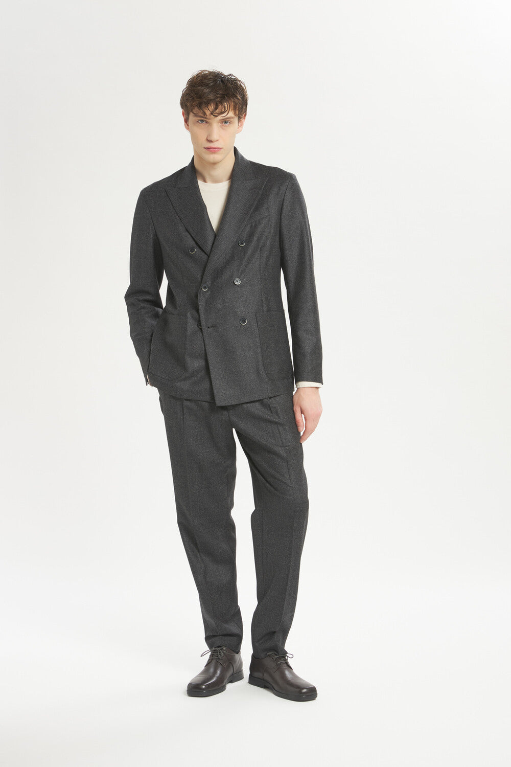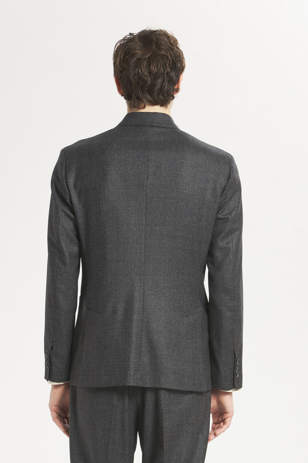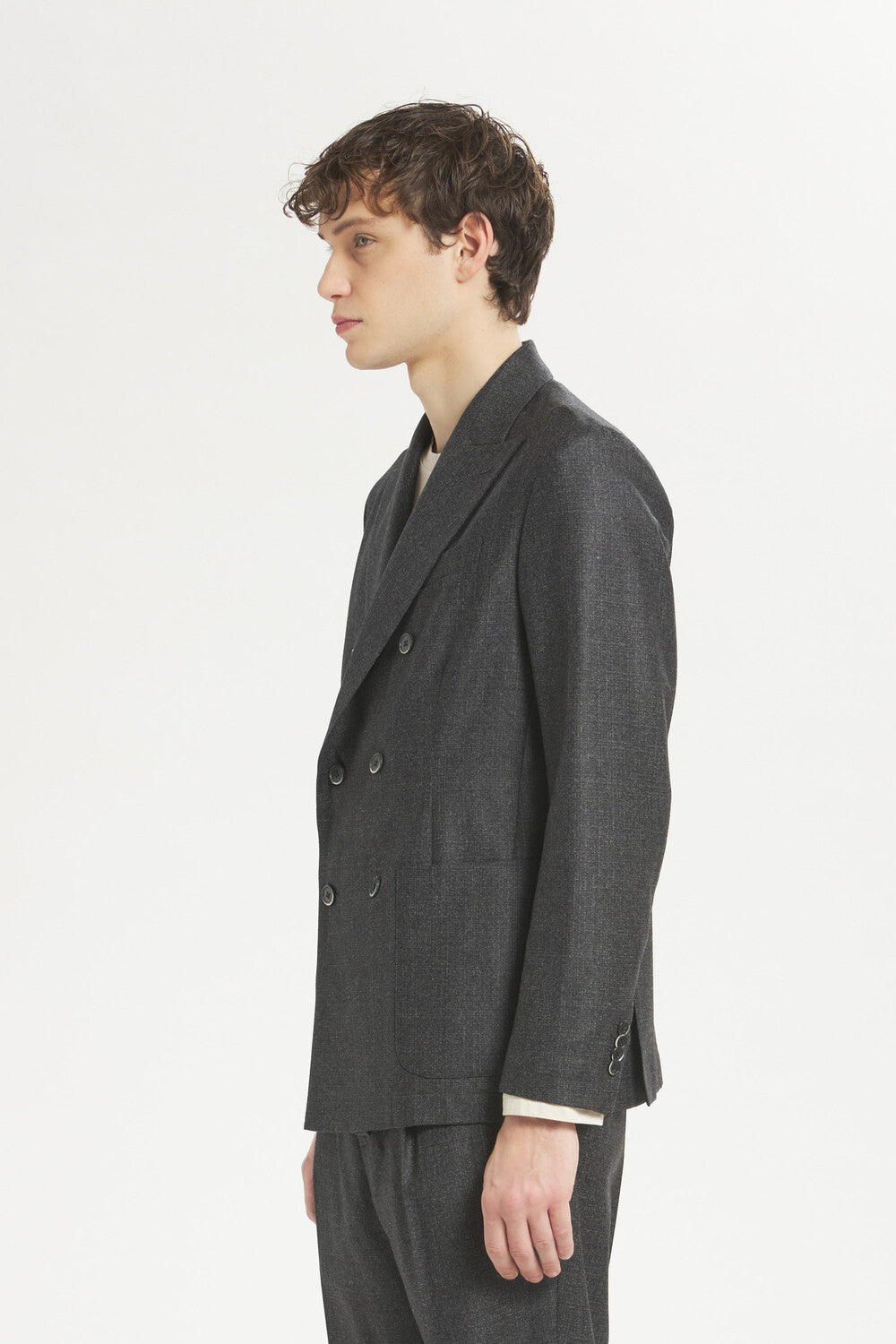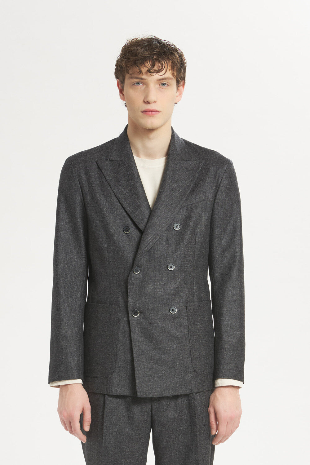 Blazer shaped to a double-breasted silhouette with defined peak lapels, three front pockets, buttoned cuffs and two back vents for movement. Tailored for a close cut fit.