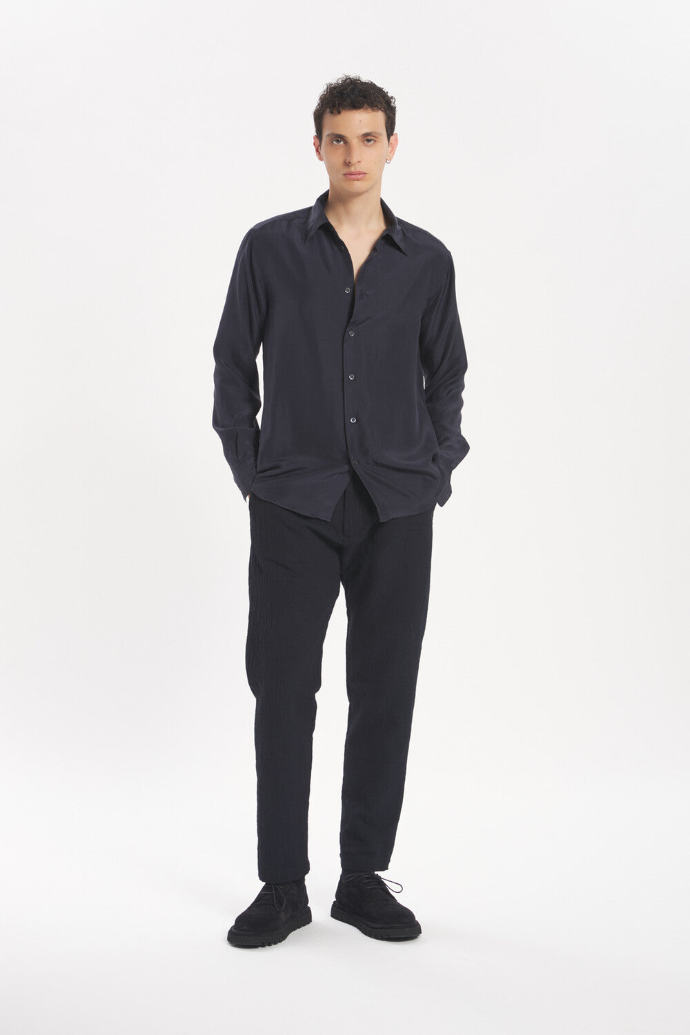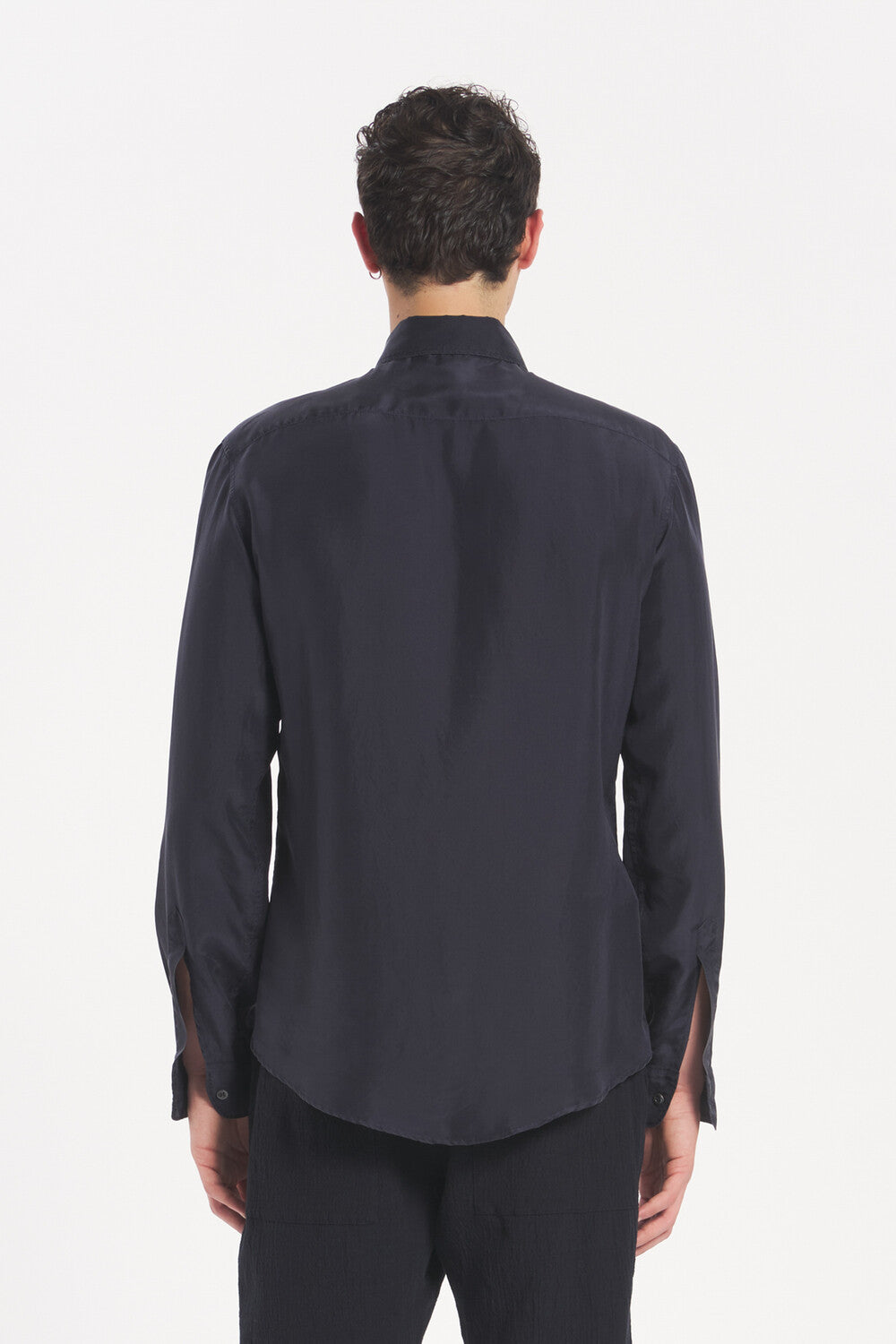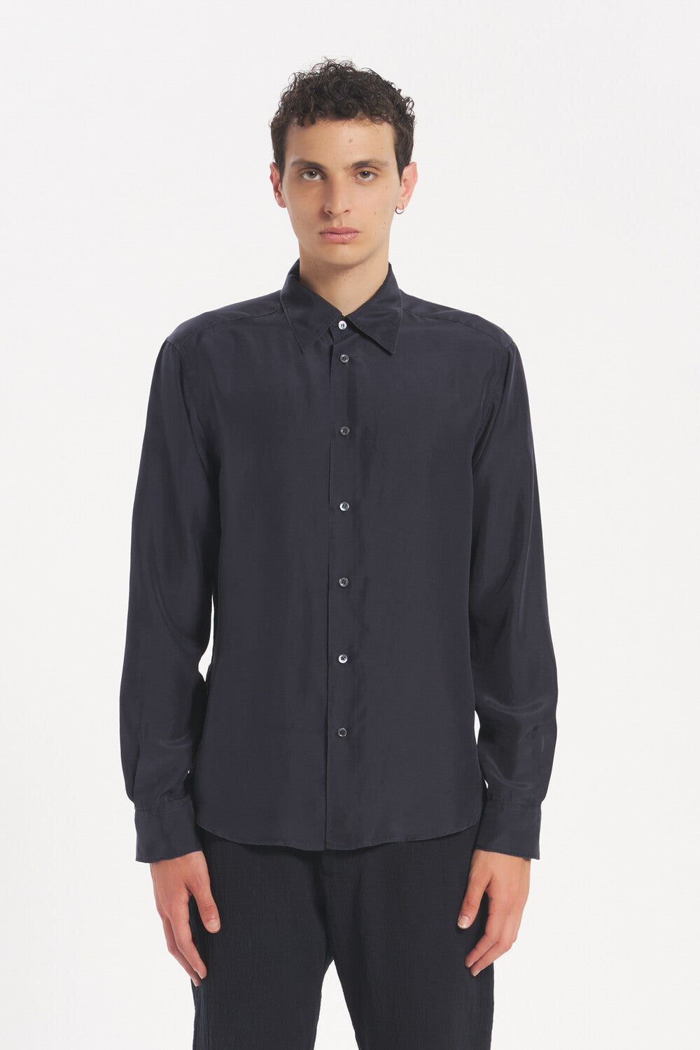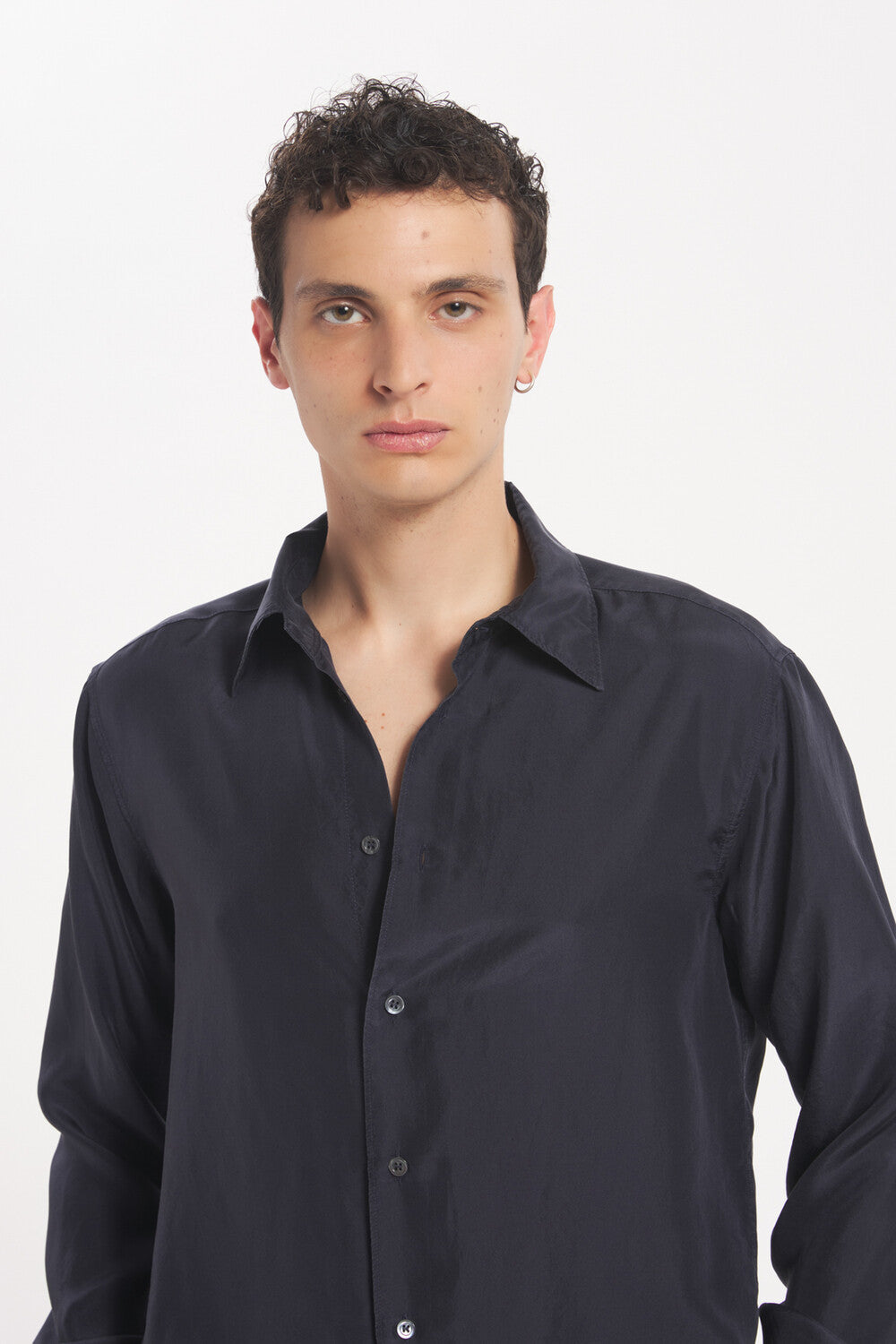 The smooth, lightweight silk lends a soft and delicate appearance to this classic shirt. The shirt is defined by a regular-fit silhouette, a regular collar and rounded cuffs.