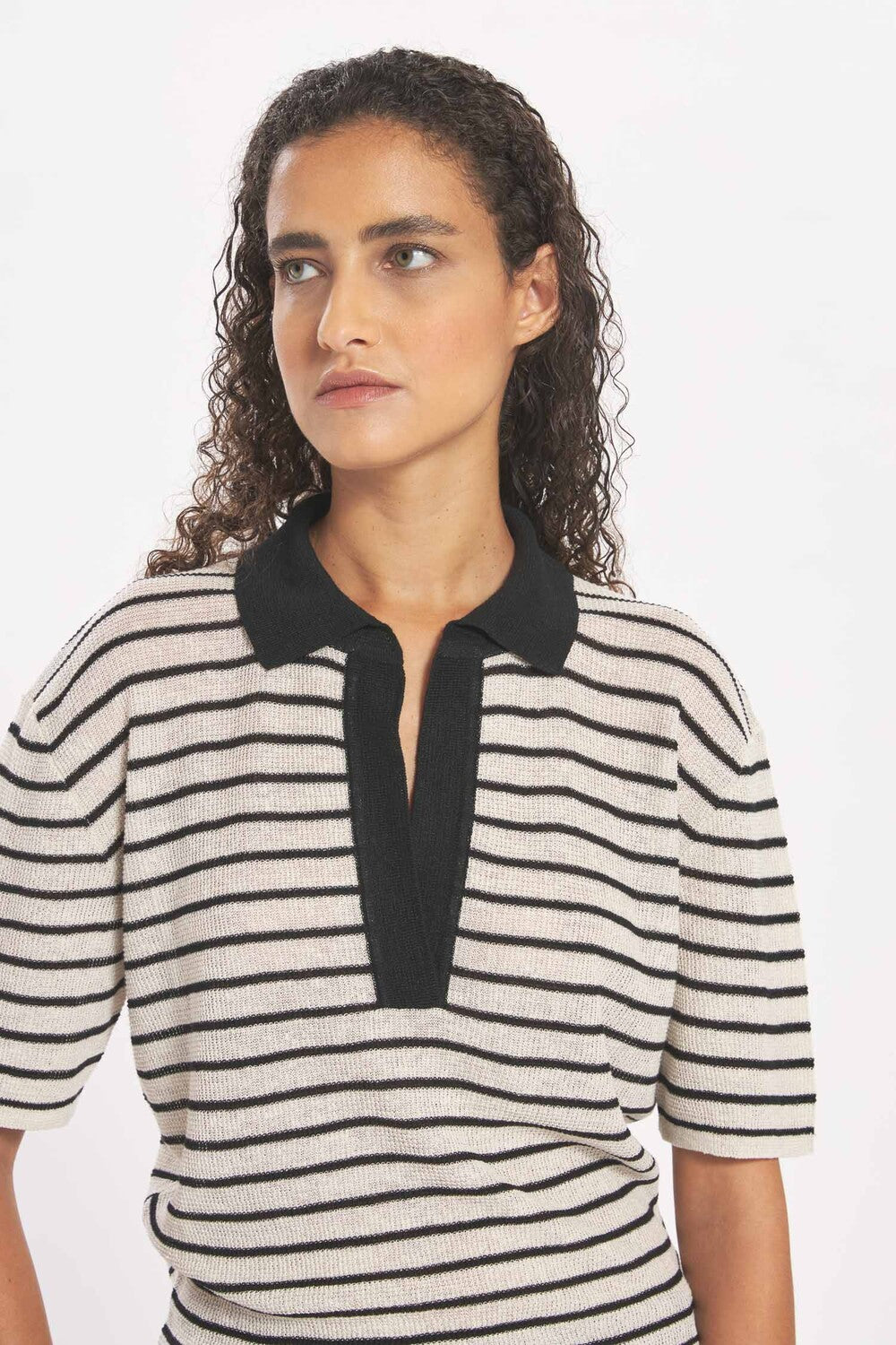 Made of lightweight linen and cotton knitwear with a knotted texture.