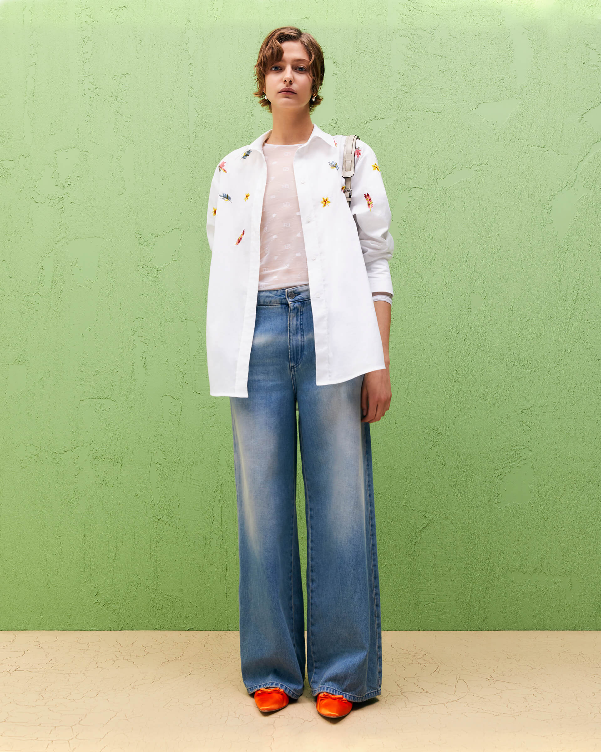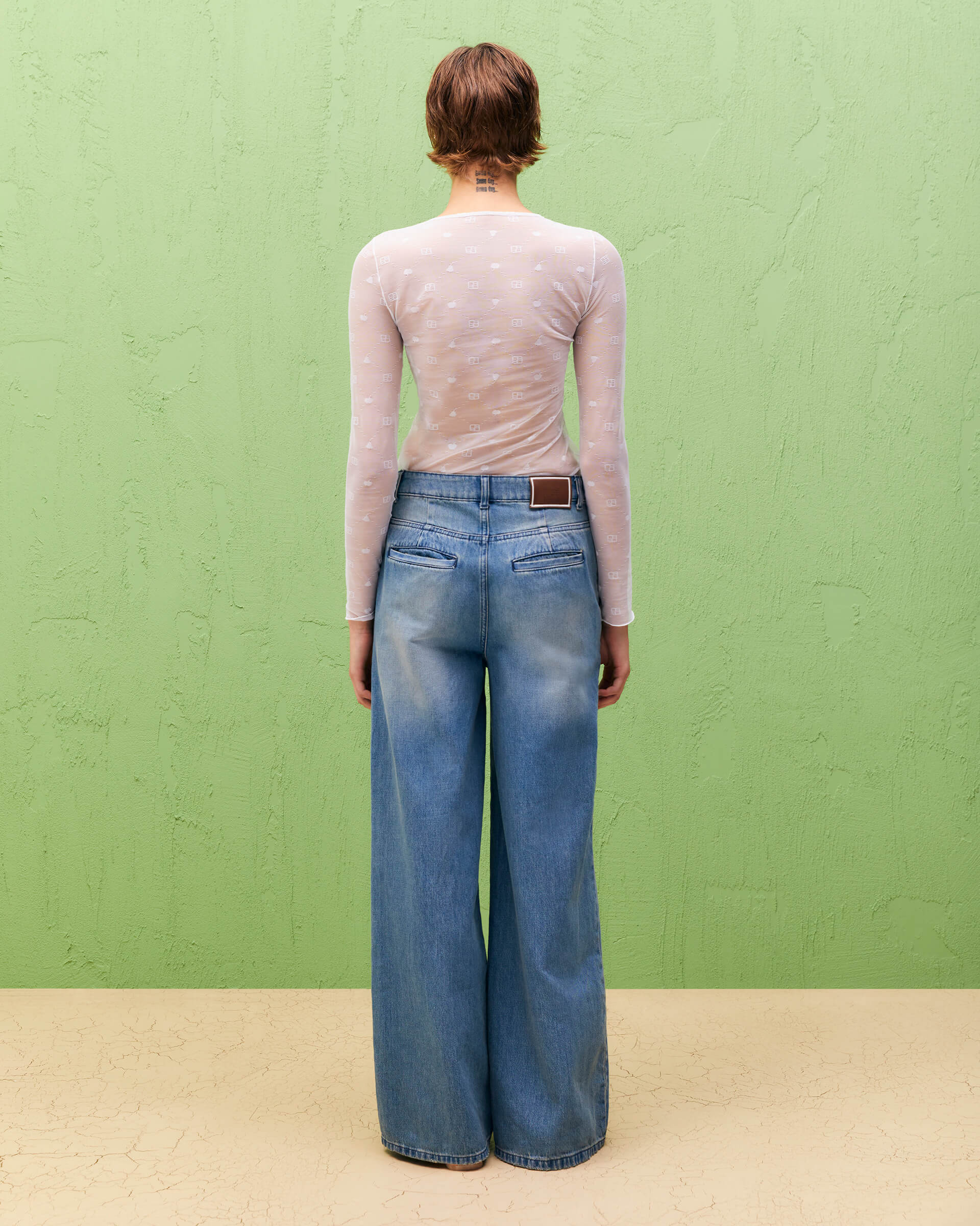 These jeans have a super relaxed and contemporary shape. They are characterised by a medium and blurred washing, have regular waist with waistband, French pockets on the front and yoke and welt pockets on the back. Made in Italy.