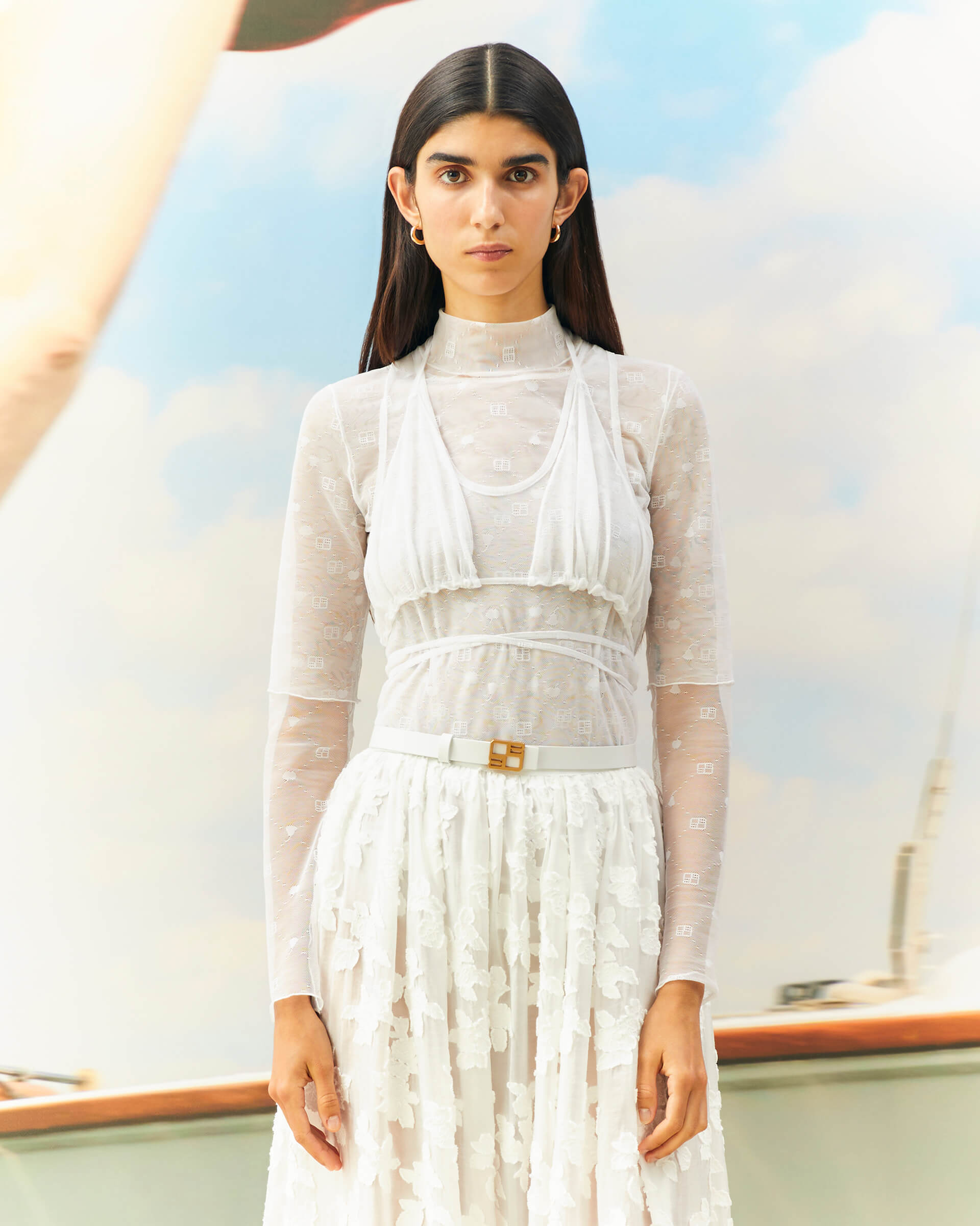 The essentiality of the under-jacket meets the chromatic details of Beatrice .b in this sweater in logoed lace Beatrice .b. It has fit shape and round neckline. Made in Italy.