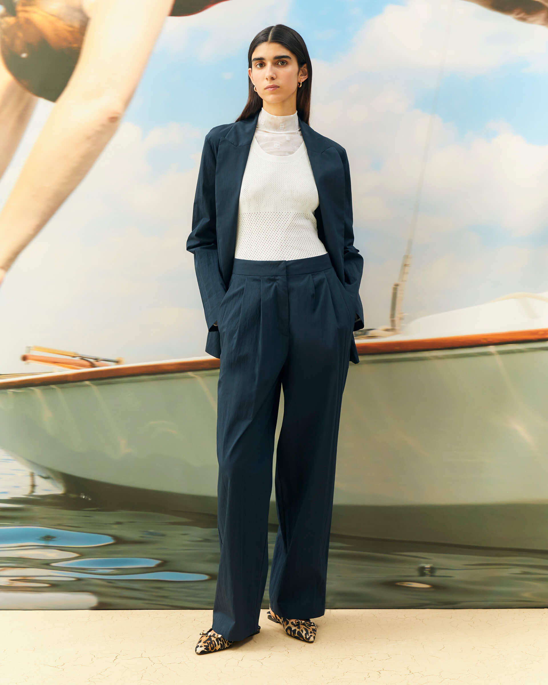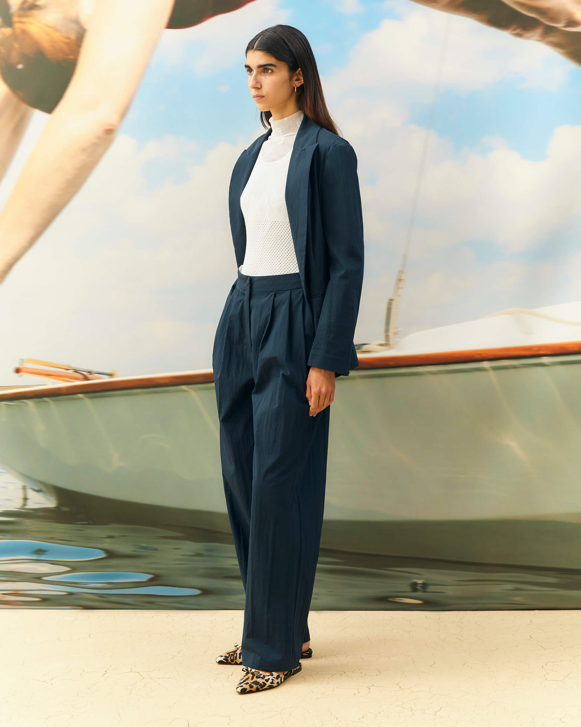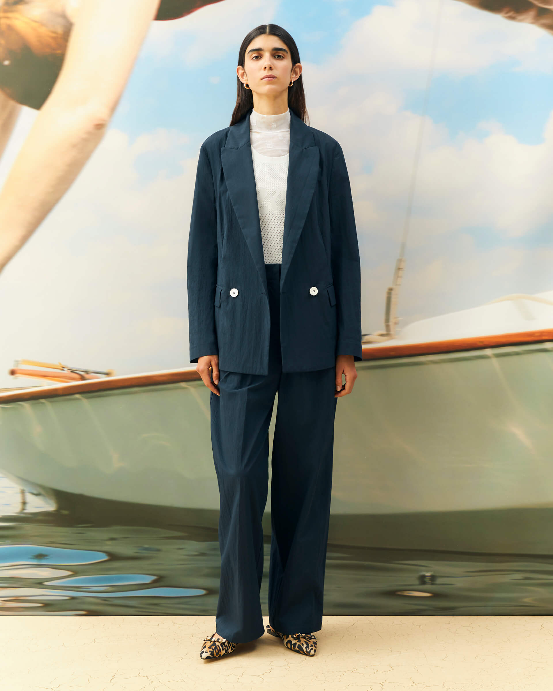 These cotton nylon pleated trousers create a perfect set for any occasion together with their double-breasted jacket. They feature a regular waist with belt, darts and slant pockets. Made in Italy.