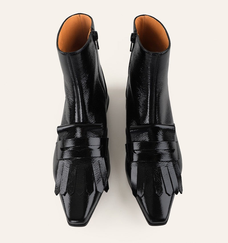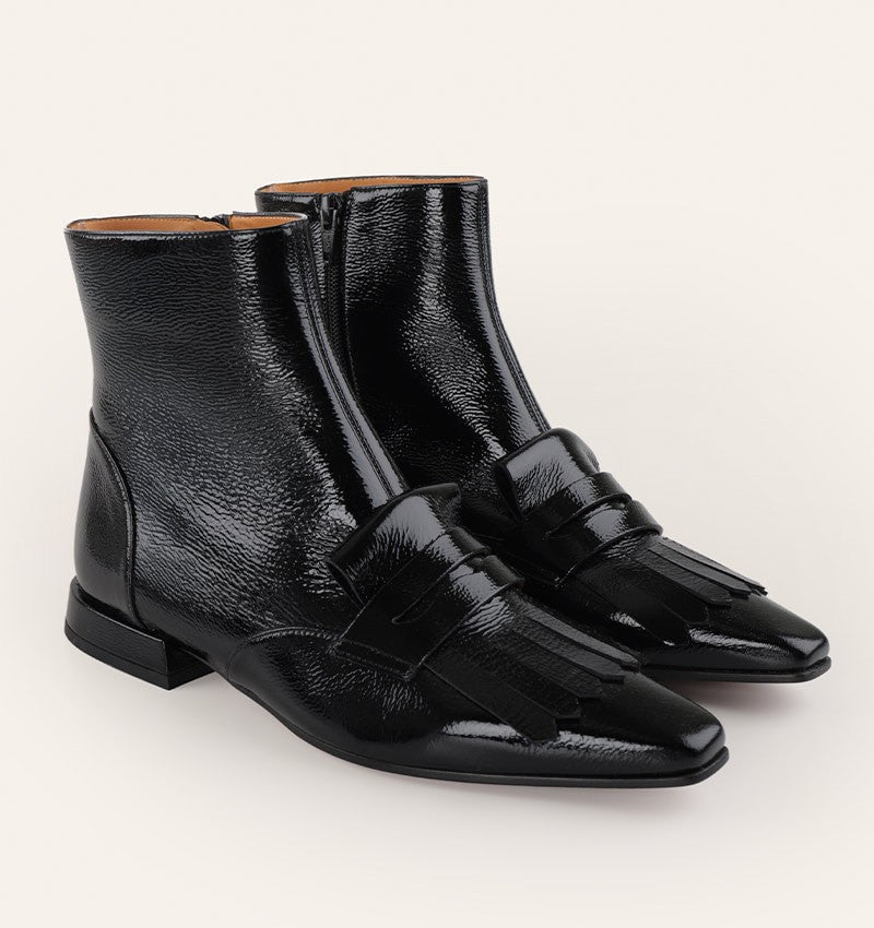 The Chie Mihara GATUSA features luxurious patent black leather with a self-covered heel, blending style and durability. Its 1 cm heel height (size 37, measured at the heel center) adjusts proportionally with size, ensuring balanced comfort. Inside, a very soft leather lining enhances breathability and wearability. The zip-fastening provides easy access, while the leather sole with an anti-slippering rubber insert offers reliable traction and stability. This expert design combines elegance with functional details for everyday sophistication.