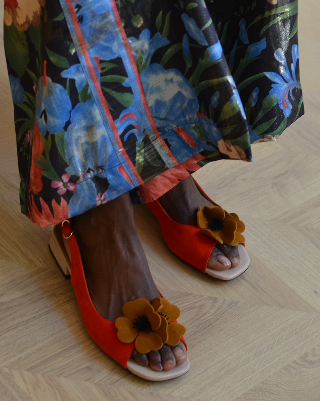 sued flower sandals