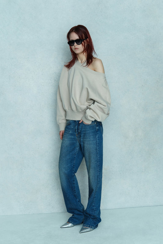 These straight-leg denim trousers are enhanced with sparkling stone embellishments, offering a sleek and polished look. Designed for a flattering fit, they combine classic denim durability with a touch of refined glamour.