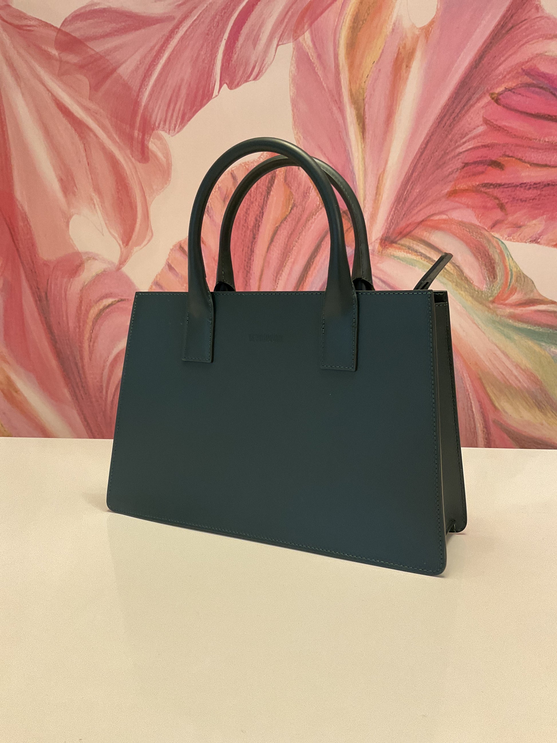The “Bonjour” handbag by De Marquet combines sophisticated design with practicality, crafted from deep evergreen smooth calfskin leather. Its detachable crossbody strap offers versatile wear for any occasion, while gold-tone hardware and fine artisan stitching accentuate its refined elegance. This timeless piece balances luxury and function for discerning users seeking style throughout their day.