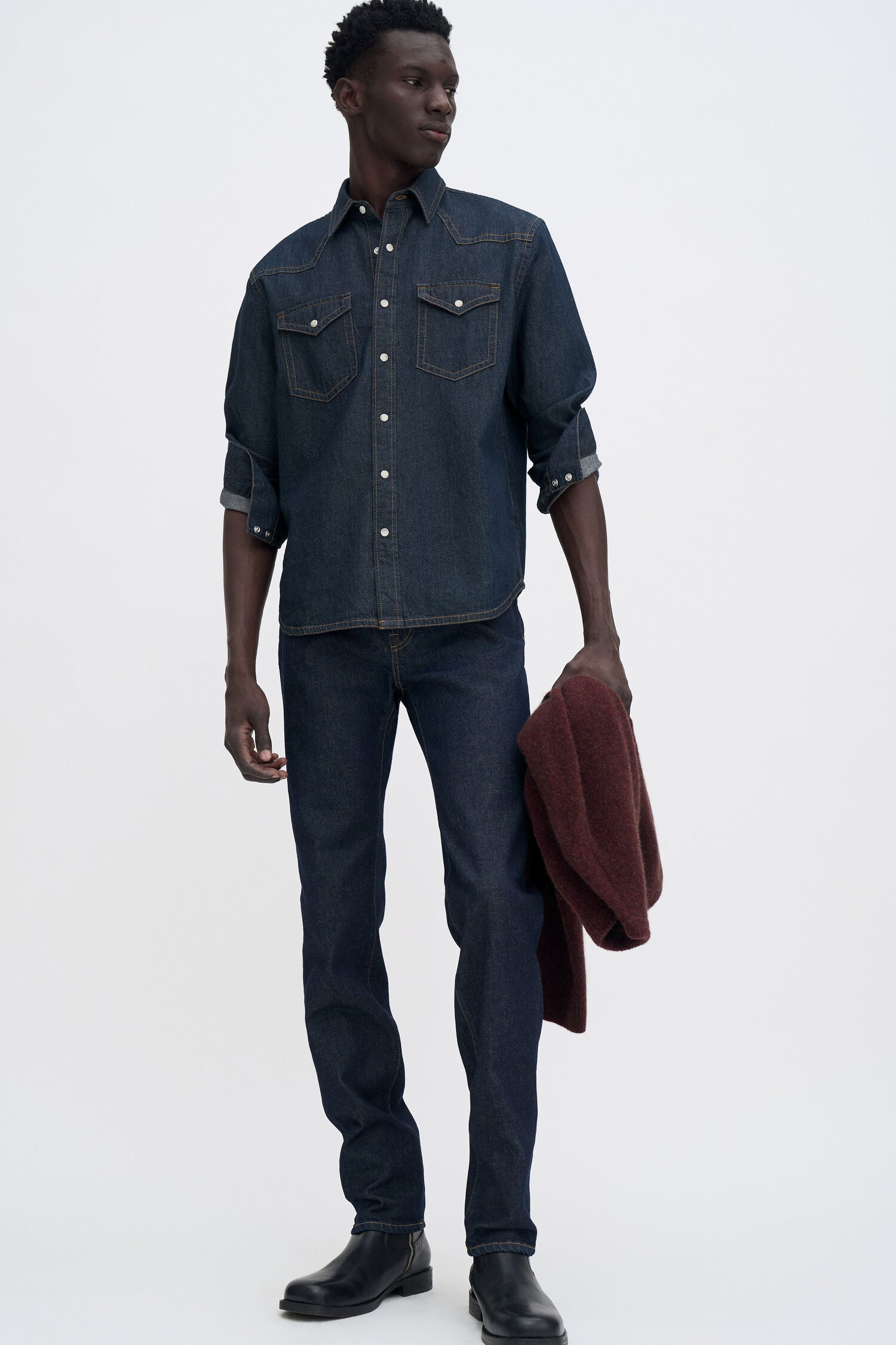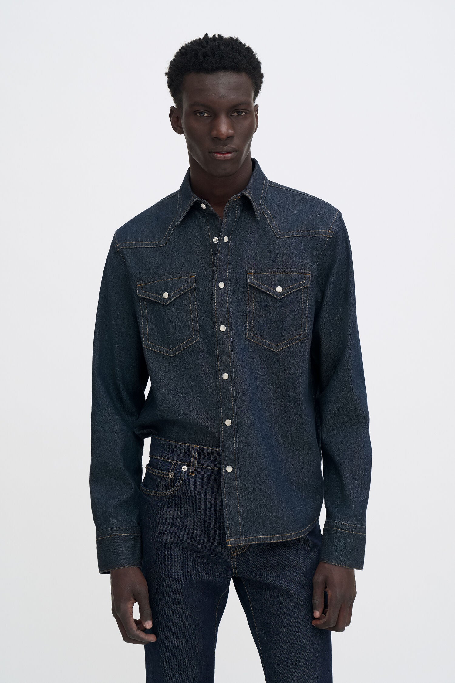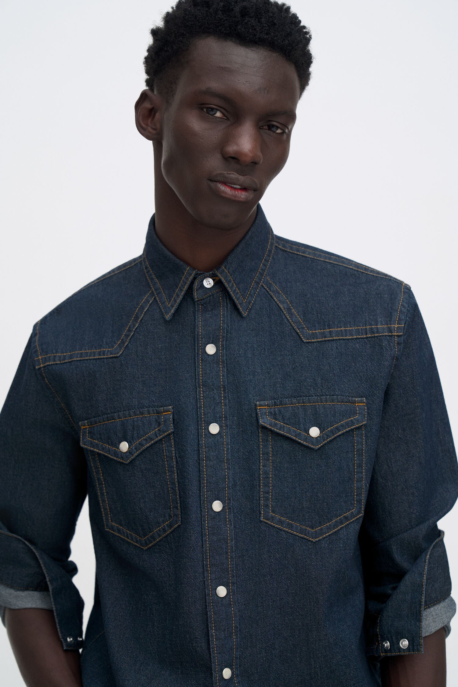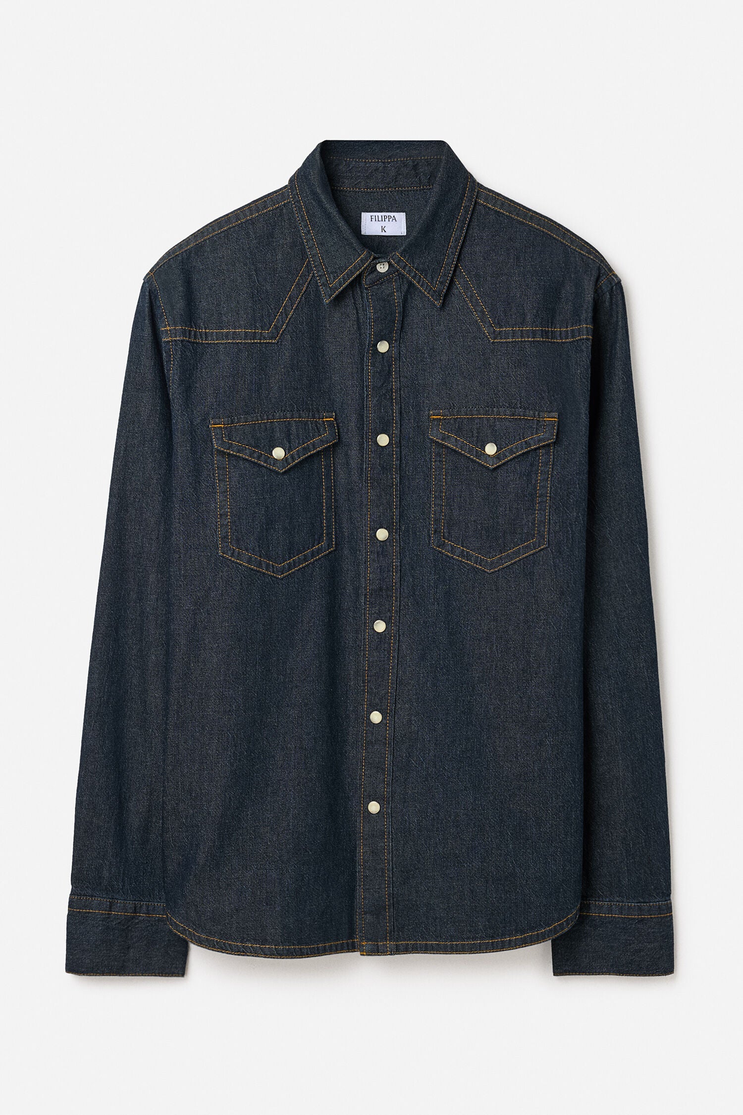 A relaxed fit shirt in organic cotton denim, with western-inspired detailing. Wear it with jeans for denim-on-denim, or add a casual balance to tailored trousers.