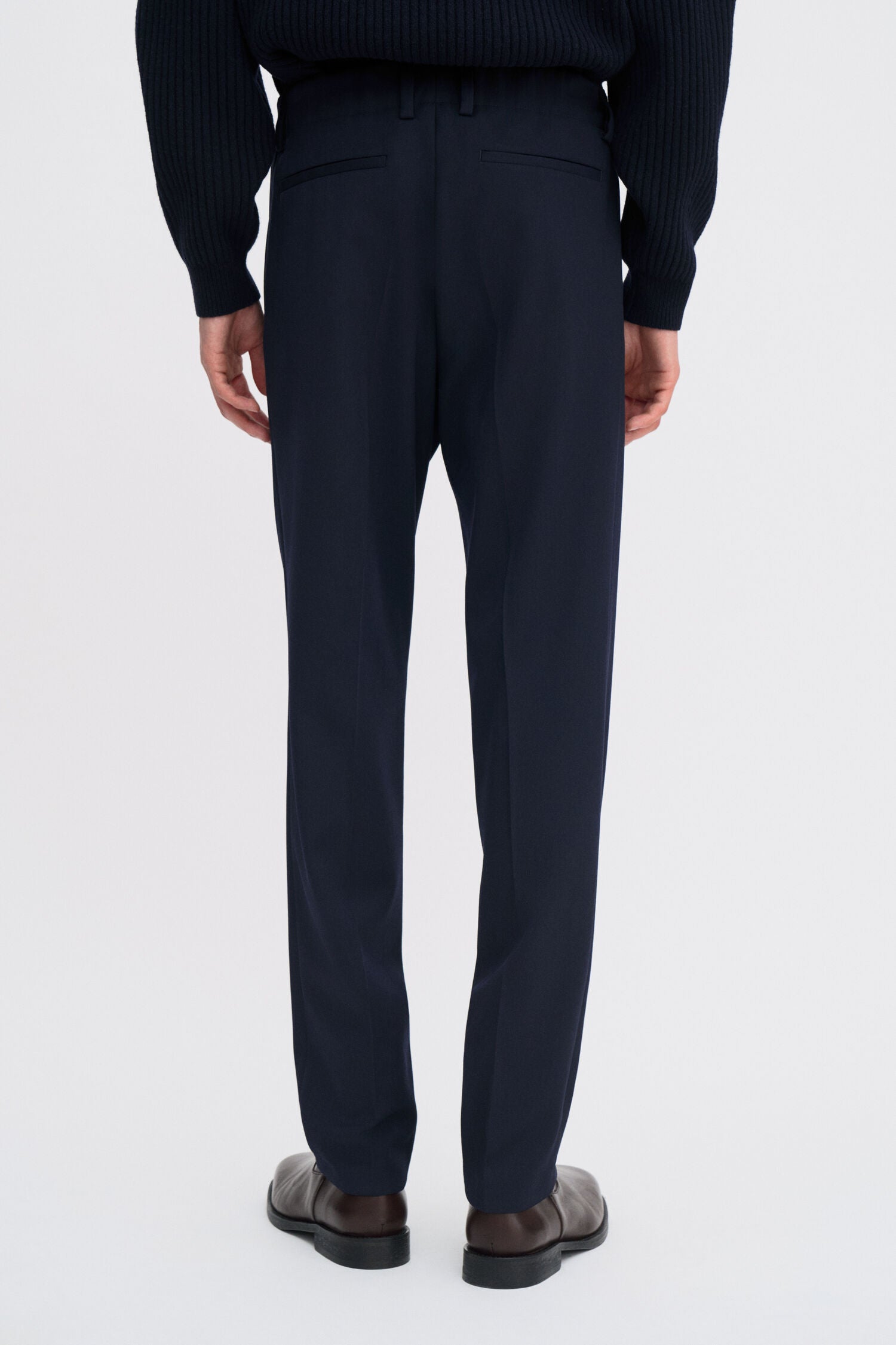 The Troy Trousers are designed with a regulat fit and mid-waist, tailored from a wool blend gabardine with subtle stretch. A relative of our best-selling Terry and Theo Trousers, they have a button closure at the front with an elastic waist at the back, and a full length. Wear them with a cosy knit for an elevated outfit, day or night.