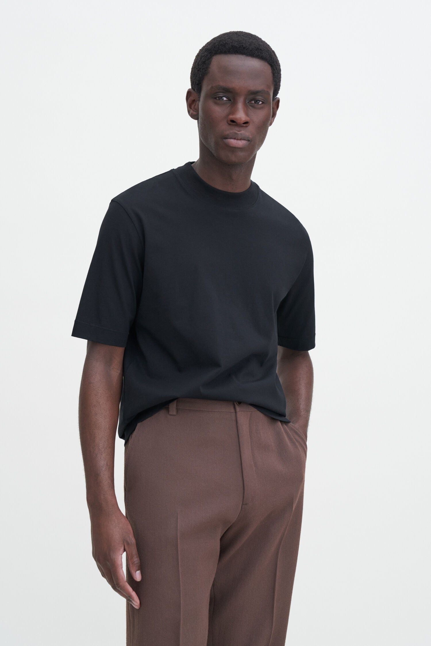 The Mock Neck Cotton Tee in white has a regular fit in mid-weight organic cotton jersey. Designed with a mock neck collar, baseball-style stitching, and the Filippa K 93 Monogram in tonal embroidery at the centre back of the neck.
