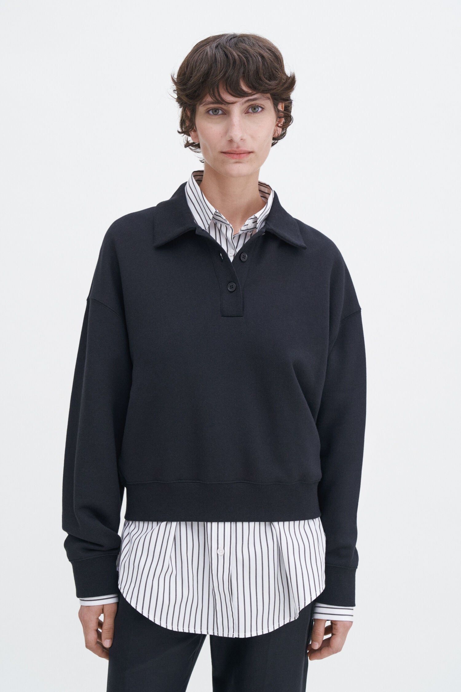 Polo collar sweatshirt, designed with an oversized fit and cropped length in brushed fleece made from organic cotton and TENCEL™. Detailed with buttoning at the collar and Filippa K 93 Monogram embroidery at the centre back of the neck. Wear it with denim for a classic casual look.