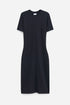 T-Shirt dress with a relaxed fit and below-knee length, in a soft draped mid-weight jersey blend. Designed with top-stitched detailing and a centre back slit. Wear it with sneakers on casual days, or elevated it with a heel.