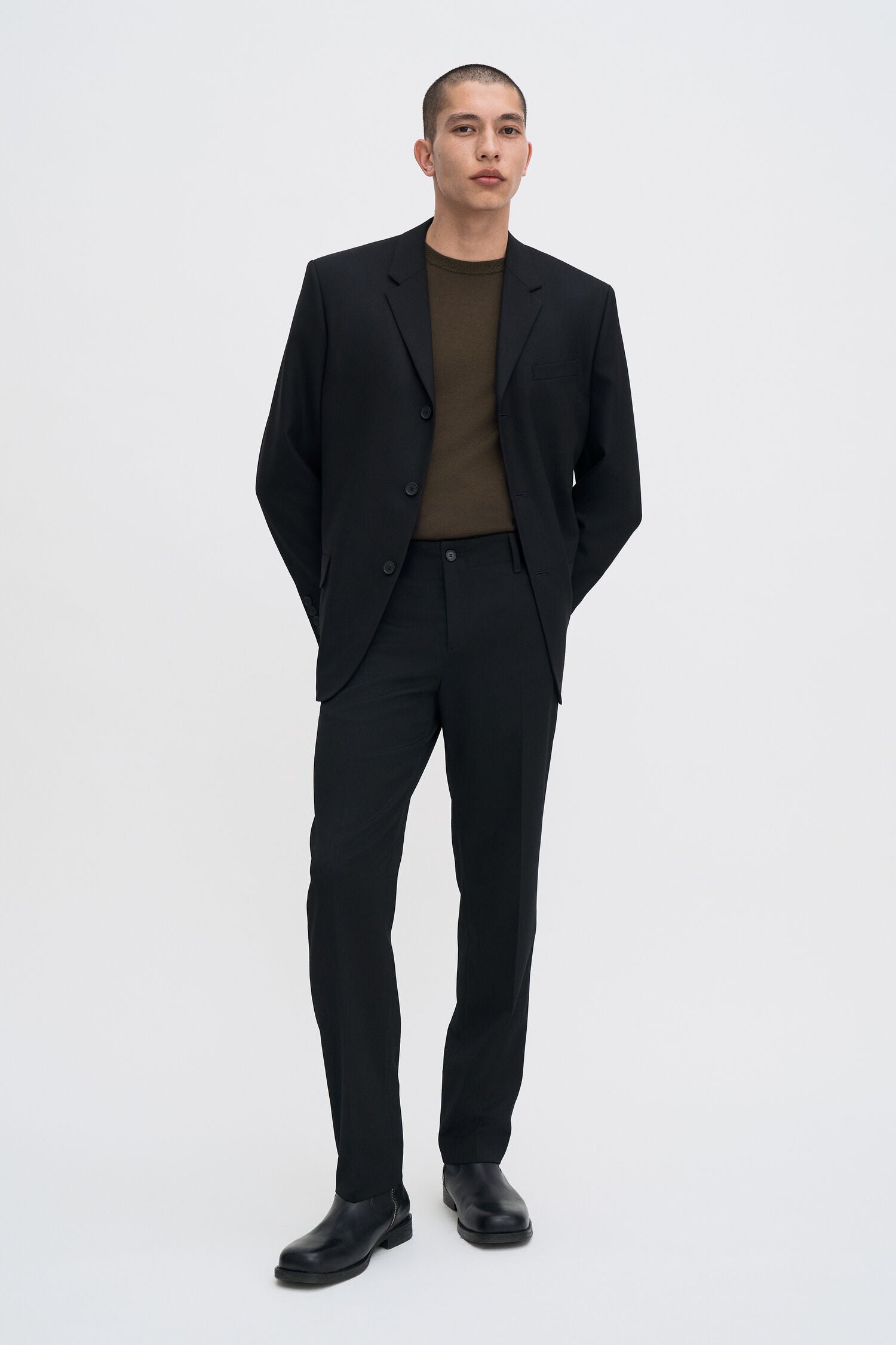 the Elastic waist tailored trousers are designed with a regulat fit and mid-waist, tailored from a wool blend gabardine with subtle stretch. A relative of our best-selling Terry and Theo Trousers, they have a button closure at the front with an elastic waist at the back, and a full length. Wear them with a cosy knit for an elevated outfit, day or night.