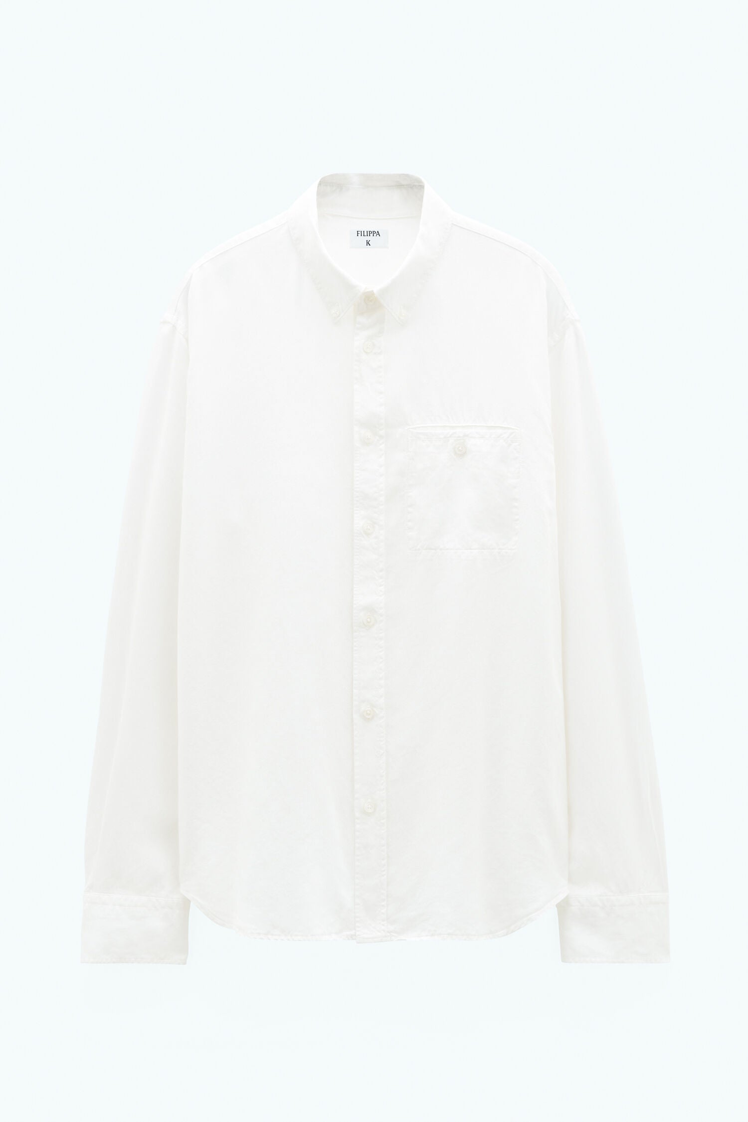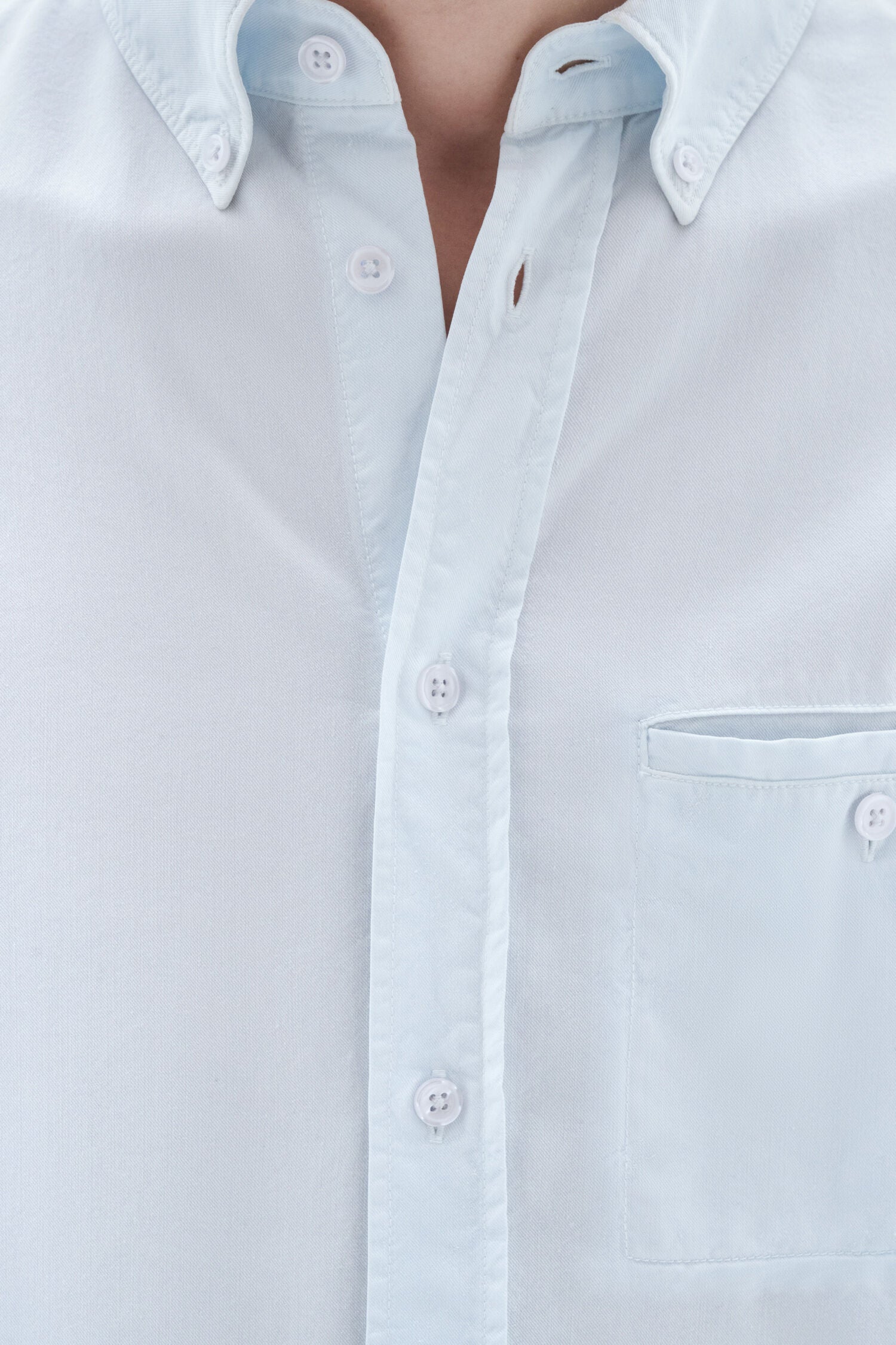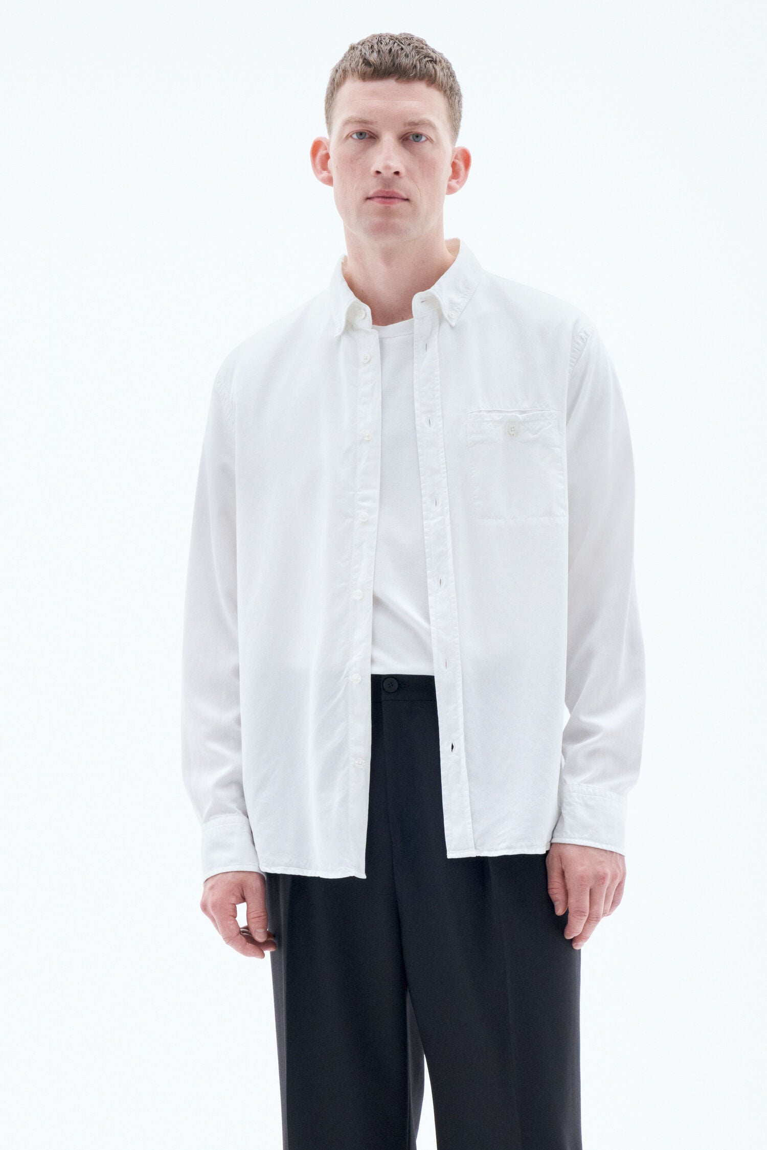 The Zachary Shirt has a relaxed fit in white TENCEL™ lyocell, a soft fibre from Lenzing created from wood pulp. Detailed with visible topstitching and a buttoned patch pocket. Dress it up with tailored trousers, or wear it casual with denim. This piece is part of our Core Collection of permanent wardrobe staples.