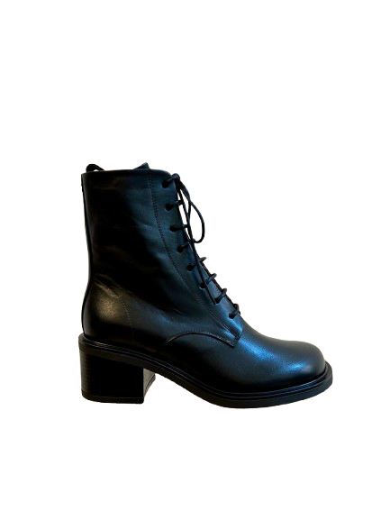 These boots feature a lace-up design complemented by a sturdy block heel.