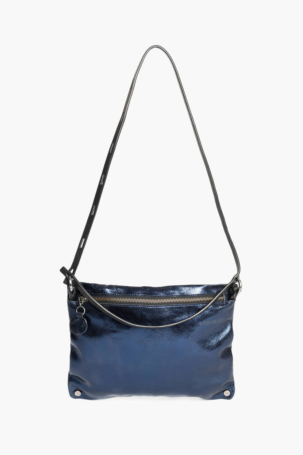 Simple and lightweight leather crossbody bag with adjustable vegetable-tanned strap. The unlined MOONLIT ed.1 in metallic ultramarine blue is particularly versatile – due to the flexible carabiner rings it can be effortlessly transformed into a clutch or belt bag. Roomy enough for essentials and more.
