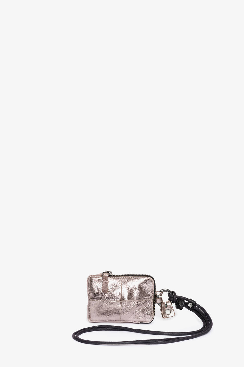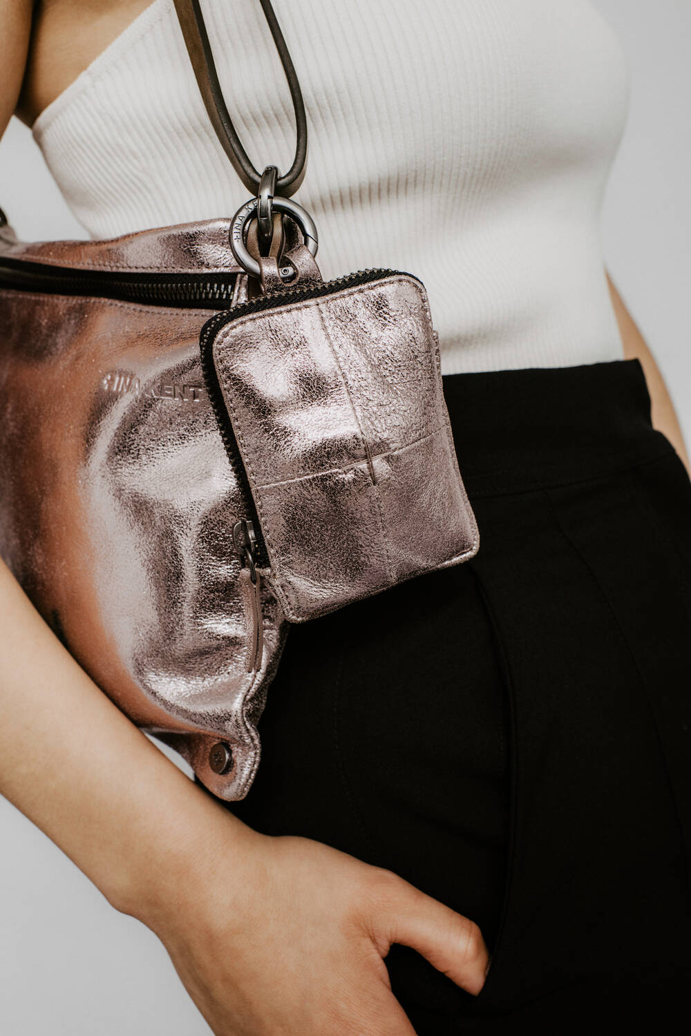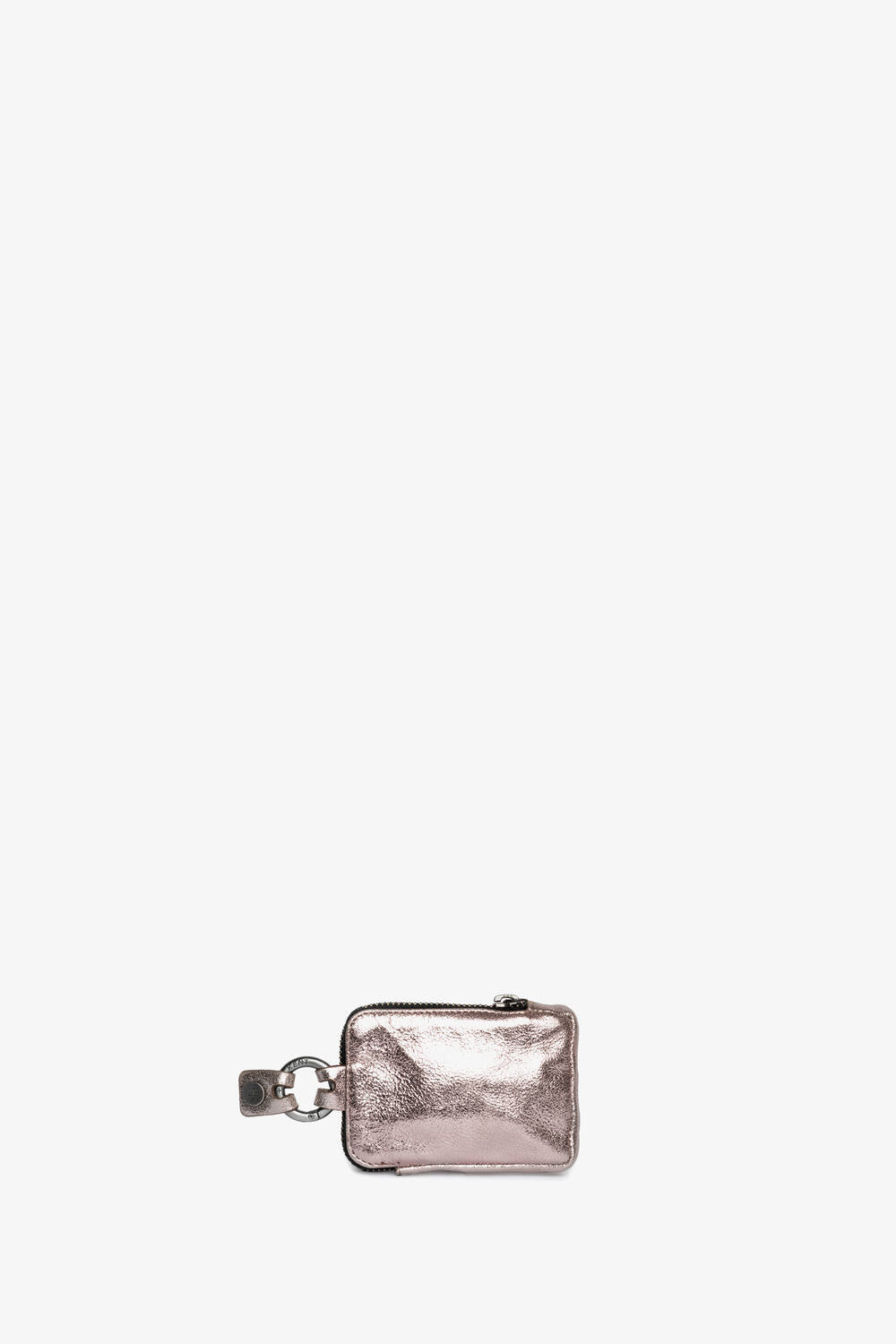 The practical mini wallet made of metallic light rose leather. With the INA KENT carabiner ring, X.LOMI ed.2 can be worn as as pouch around the neck and also easily be transformed into a bag charm. The interior offers space for cards, banknotes and coins. The adjustable cord strap makes it the ideal companion for long days and nights, that keeps your essentials ready to hand.