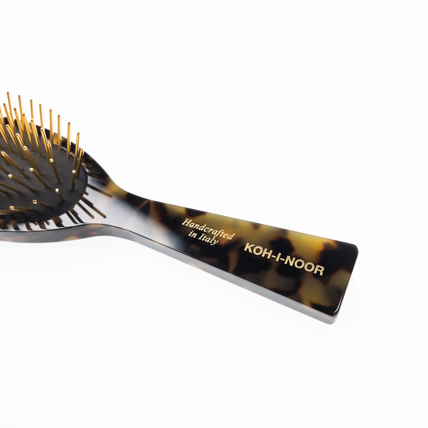 Koh-I-Noor proudly introduces our luxury gold pin pneumatic hair brushes that are made from cellulose acetate a derivative of cotton. The beautiful finish on these brushes are both shiny and scratch resistant. These brushes come in classic, garden and honey colors.
