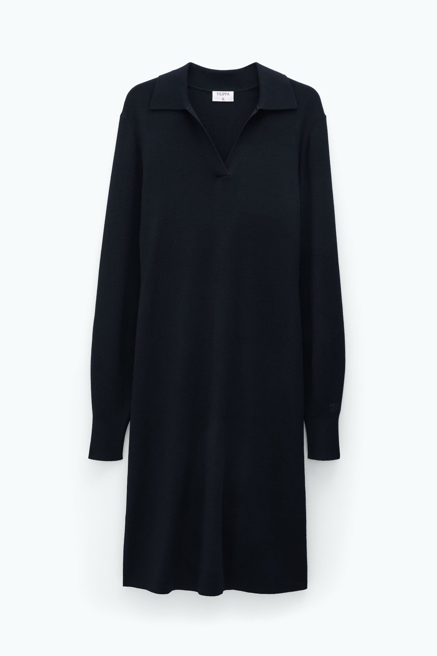 The Knit Polo Dress has a regular fit in a lightweight black viscose knit. It's designed with a collared v-neck and slightly voluminous sleeves, and subtle Filippa K 93 Monogram embroidery.
