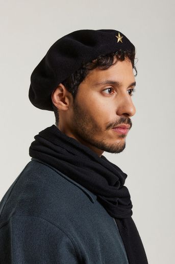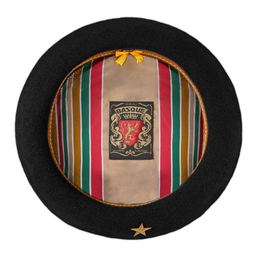 The LAULHÈRE Beret CHE is crafted from 100% French merino wool, reflecting the authentic design worn by Ché Guevara. Featuring the iconic Vrai Basque badge and striped cap, this beret pays homage to Maison Julie's heritage. Its leather headband, highlighted with a yellow border and matching bouffette, ensures both comfort and durability. Ideal for those seeking a genuine and historically significant piece, this beret embodies timeless craftsmanship and cultural significance.