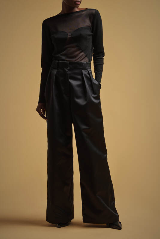 Wool crew-neck sweater with sheer panels, crew-neck, long sleeves. Regular fit