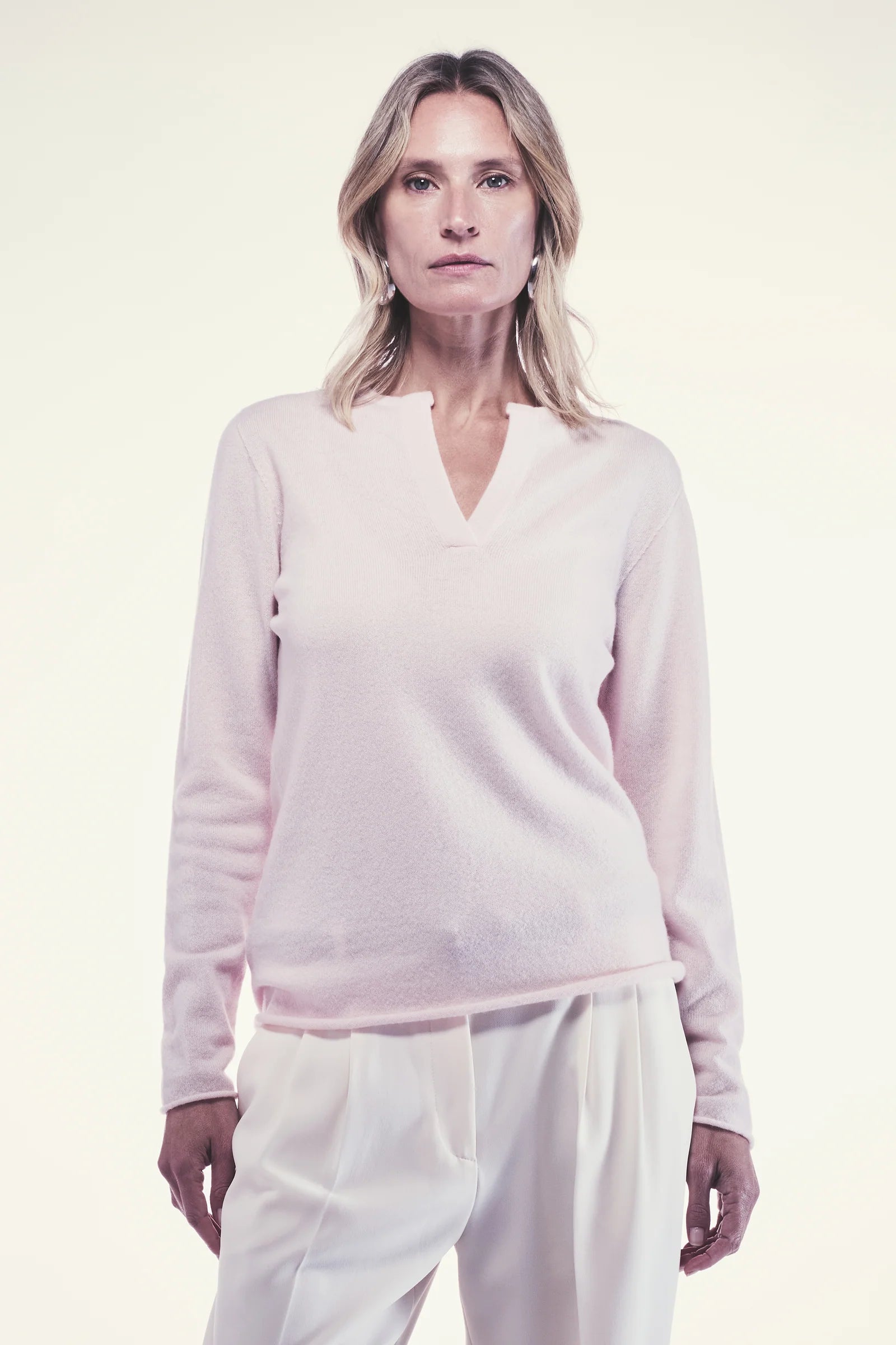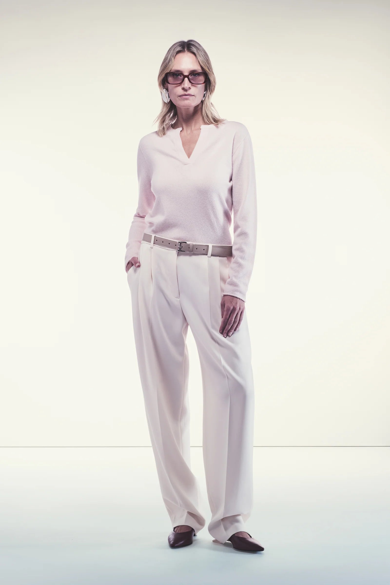 This Liviana Conti sweater is crafted from 100% cashmere, featuring a deep, finished V-neck for an elegant yet playful look. Its hip-length cut and modern fit make it