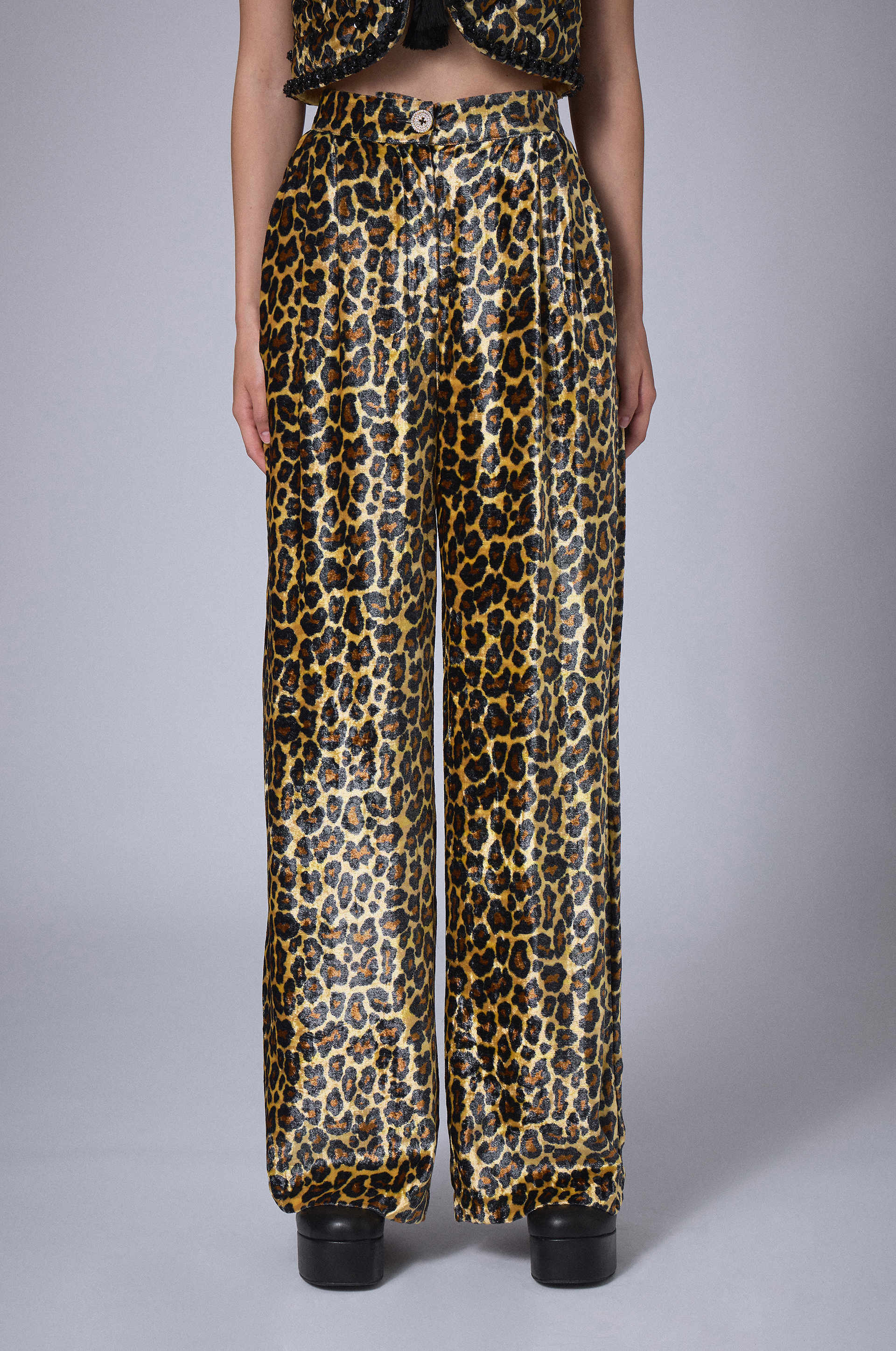 Velvet trousers. Loose fit and high waist. Zip fastening and rhinestone button at waist