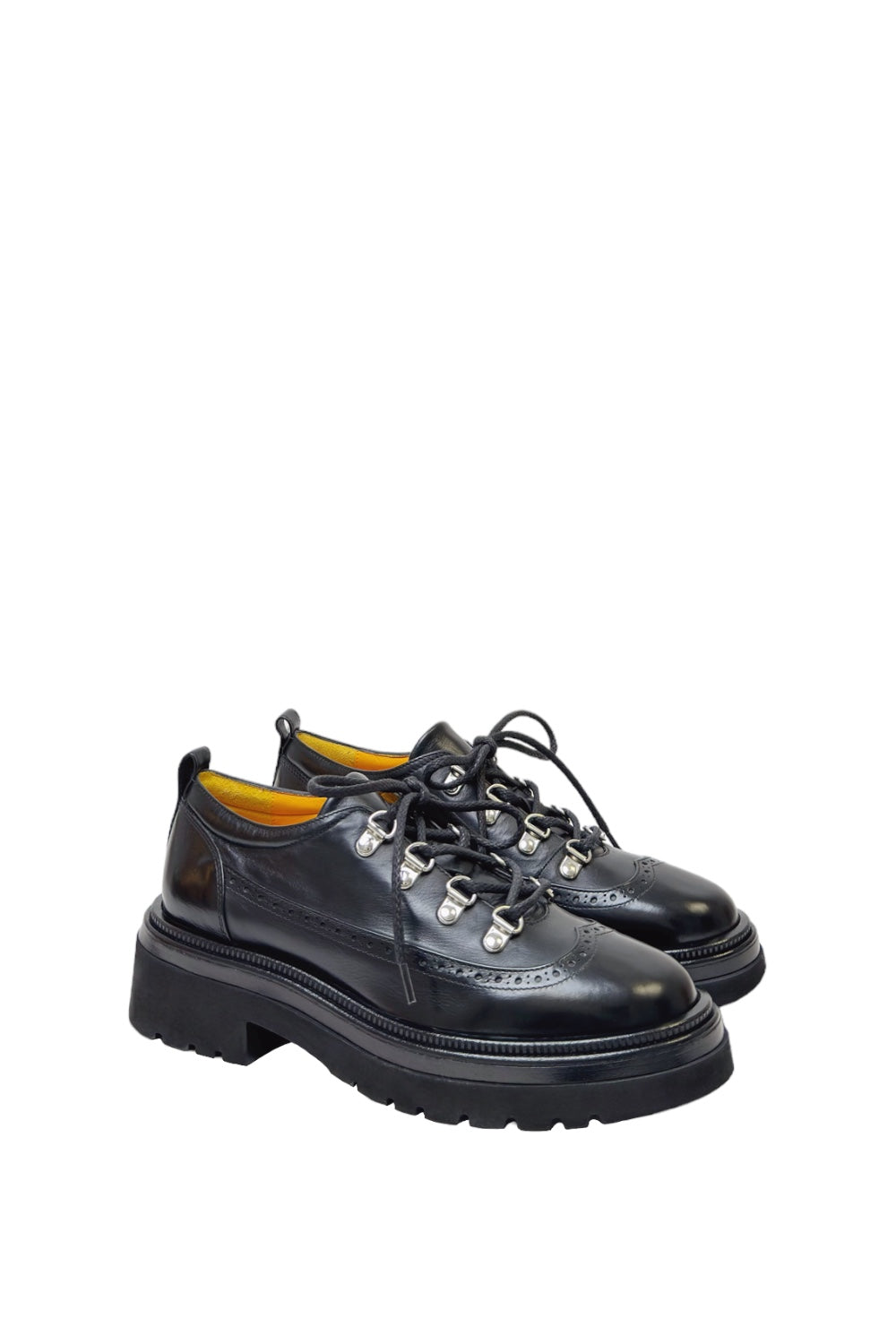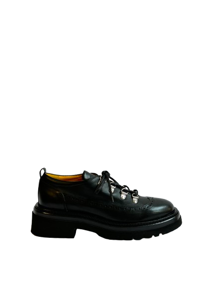 Introducing the Mara Bini HESTER T222, a classic lace-up shoe with an edgy twist. Crafted from soft, luxurious leather in a sleek black hue. Elevate your style with this must-have piece, perfect for any occasion.