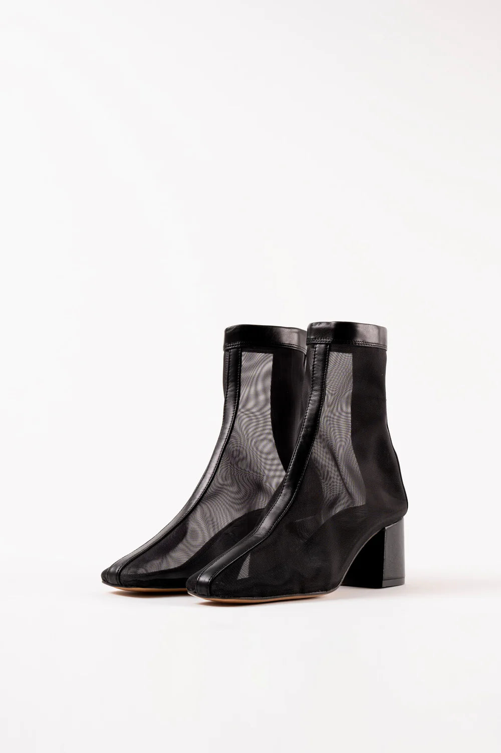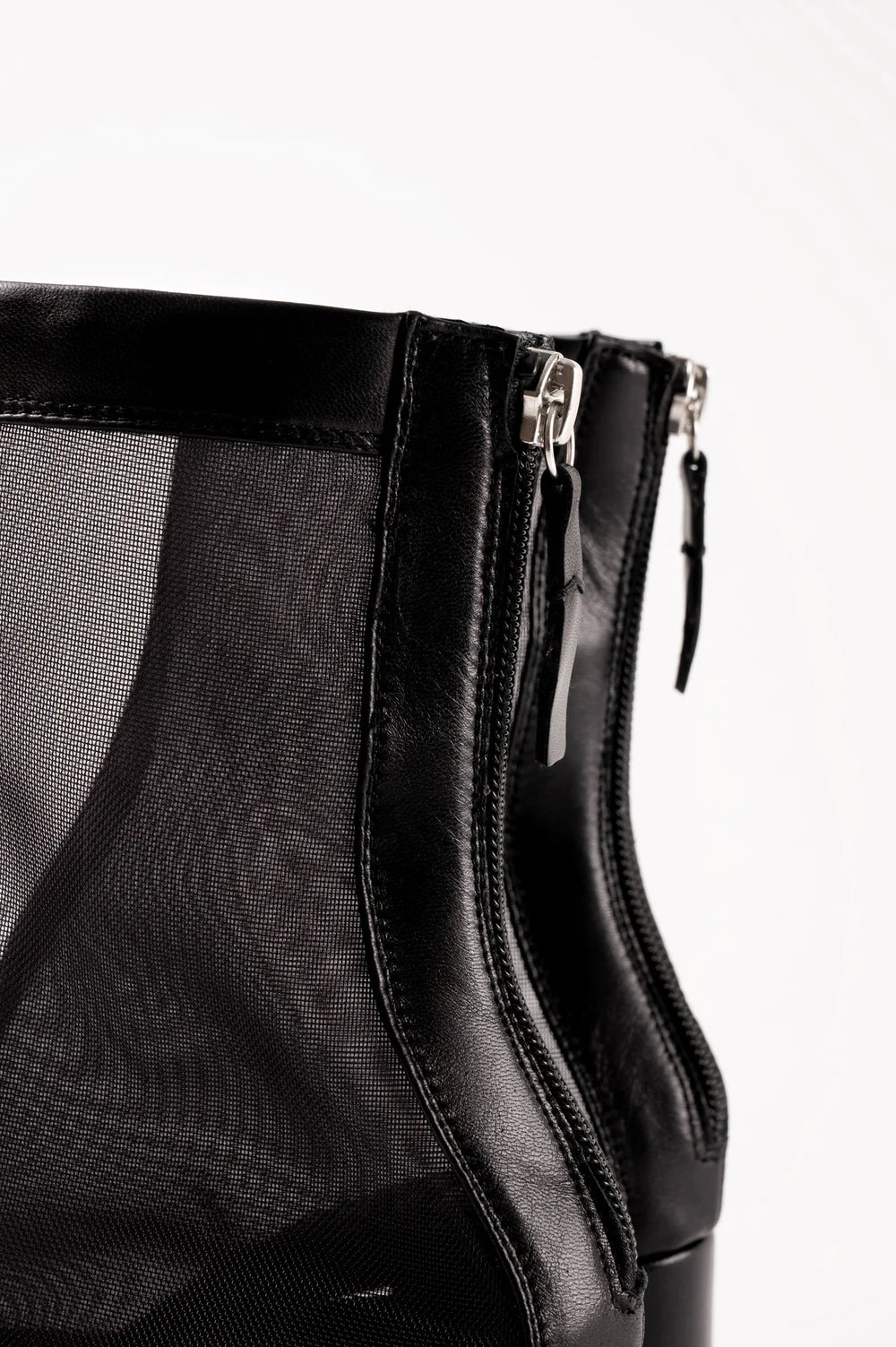 A reinterpretation of the boot that made the brand famous, the Firme is a concentrate of know-how with its upper made entirely of tulle, its insole that wraps around under the shoe and its leather sole at the front. The Firme can be worn in the summer for an assertive look, or with thick socks in colder seasons. This is the timeless boot with a 6.5 cm heel.