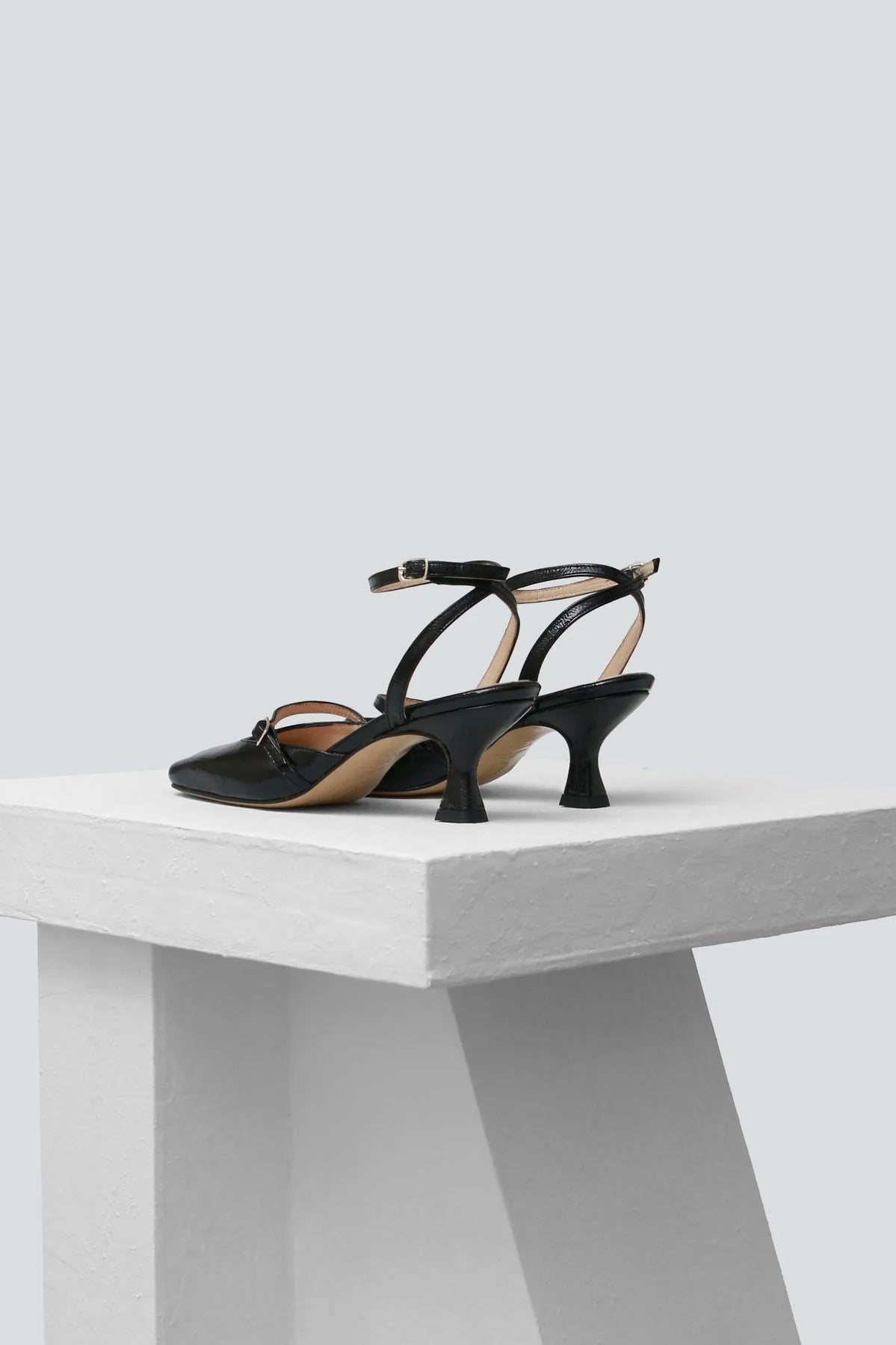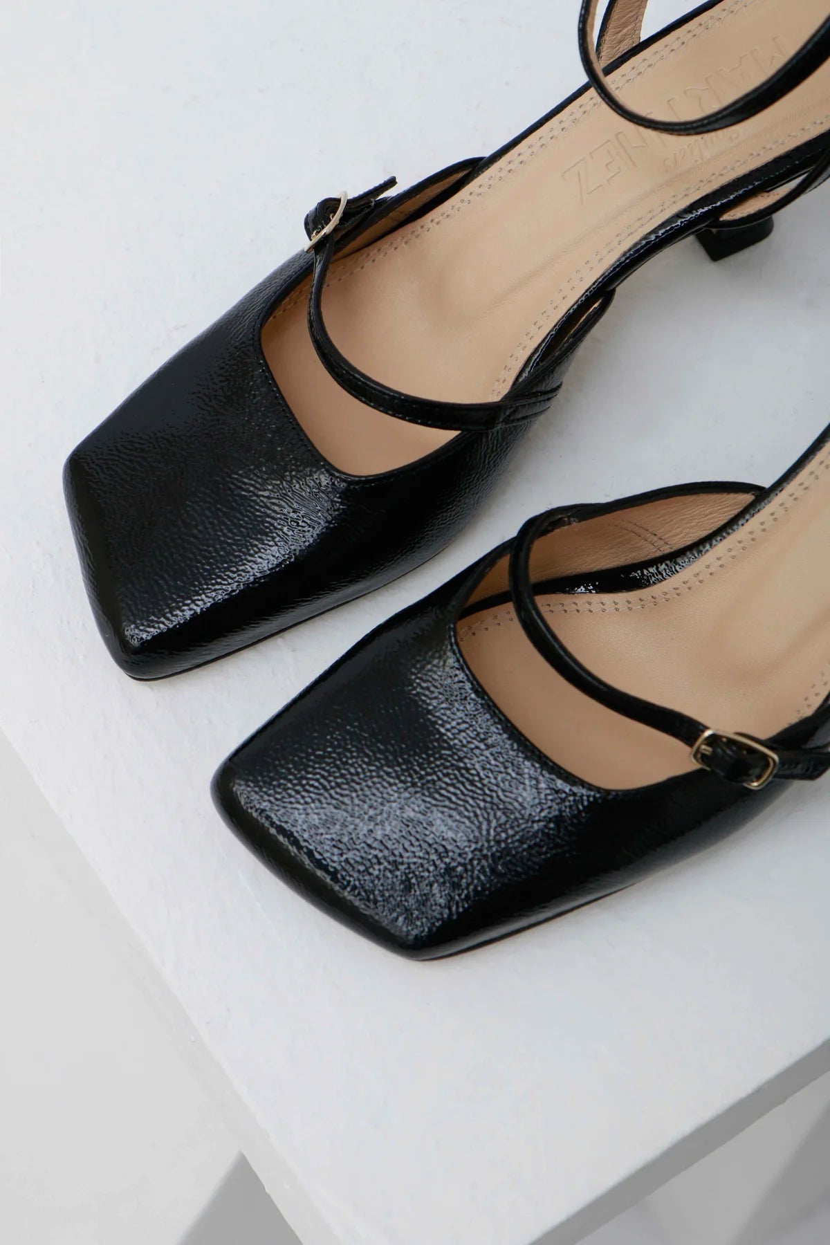 The Teresa is a small slingback pump that comes, with the help of thin strap, to fit the foot to bring femininity and retro look. They are mounted on a small 6 cm heel to provide comfort, stability and elegance to the silhouette.