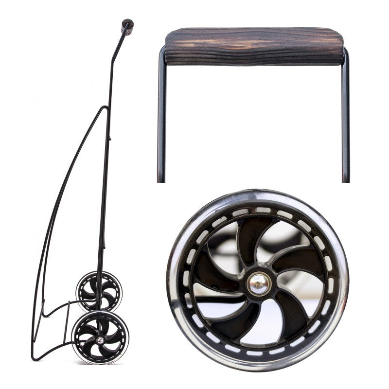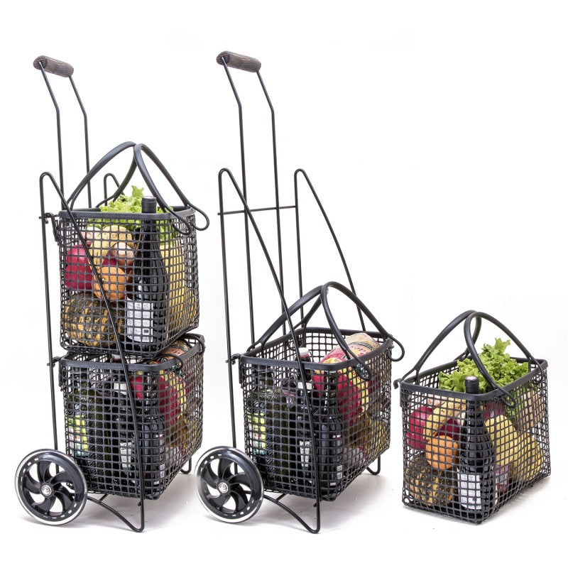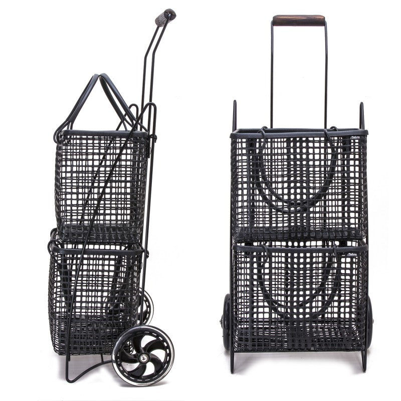 This two-story shopping cart allows for easy shopping as a duo and can fit into your car. It also has the added versatility of attaching to a bike's luggage rack. The large, quiet, 160mm wheels make for a smooth ride, while the burnt wood handle adds a comfortable touch.