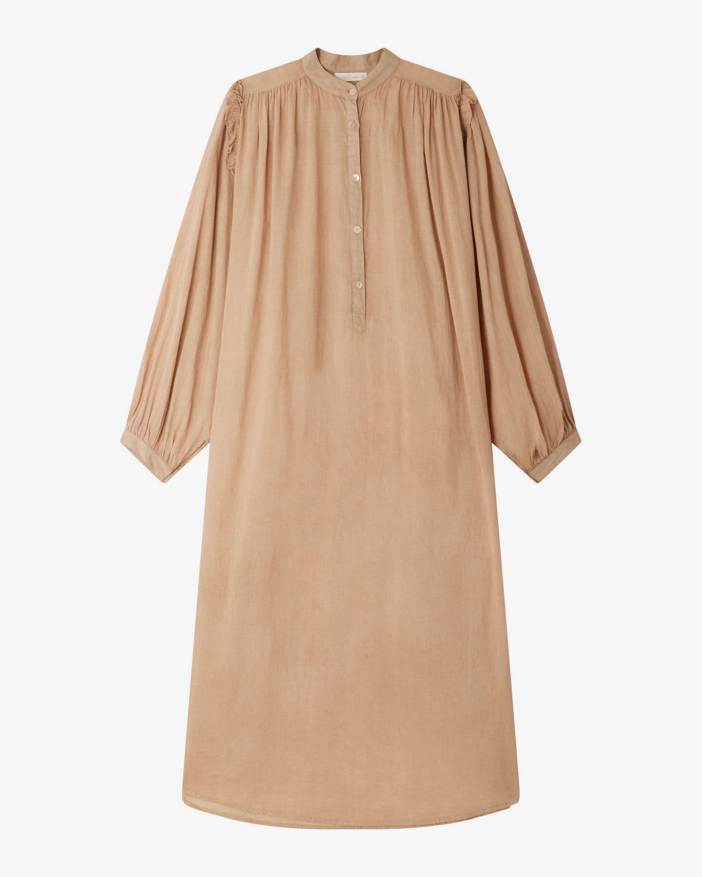 add a touch of delicacy to your wardrobe with this soft cotton voile dress in nude beige.