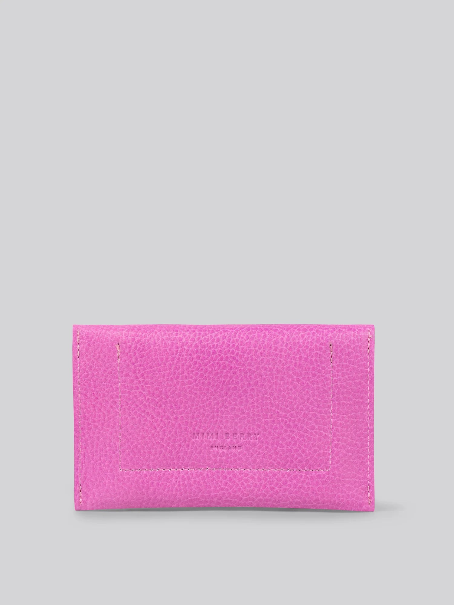 Small coin & card purse in grainy Italian veg tan leather. Front zipped coin pocket & one inside pocket. Engraved brass popper closure. Unlined.