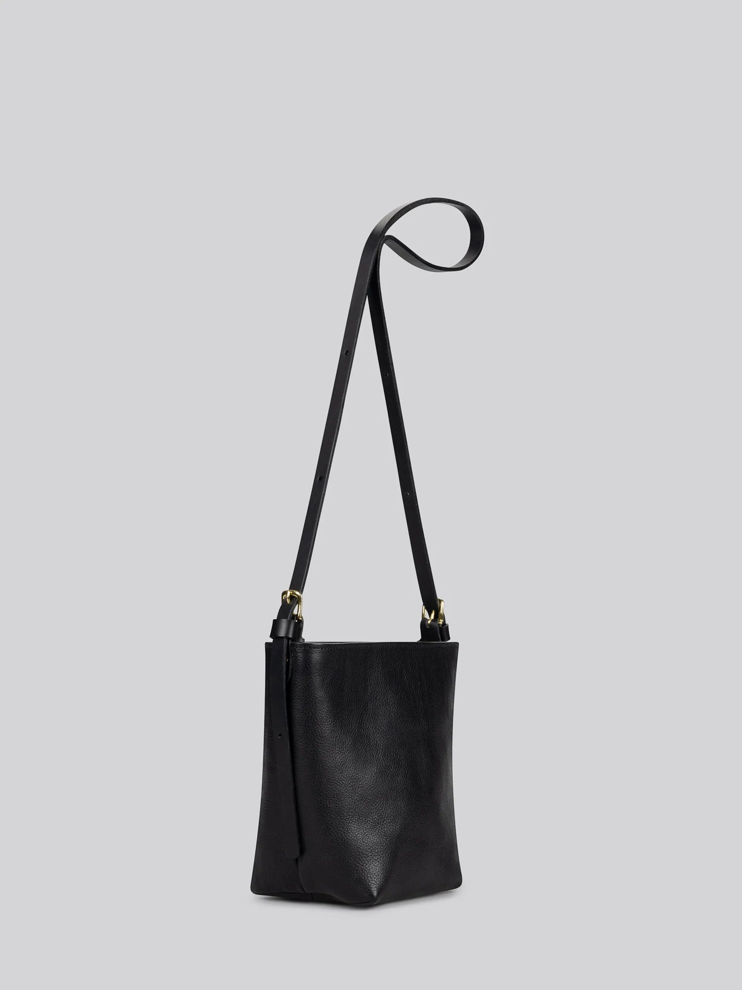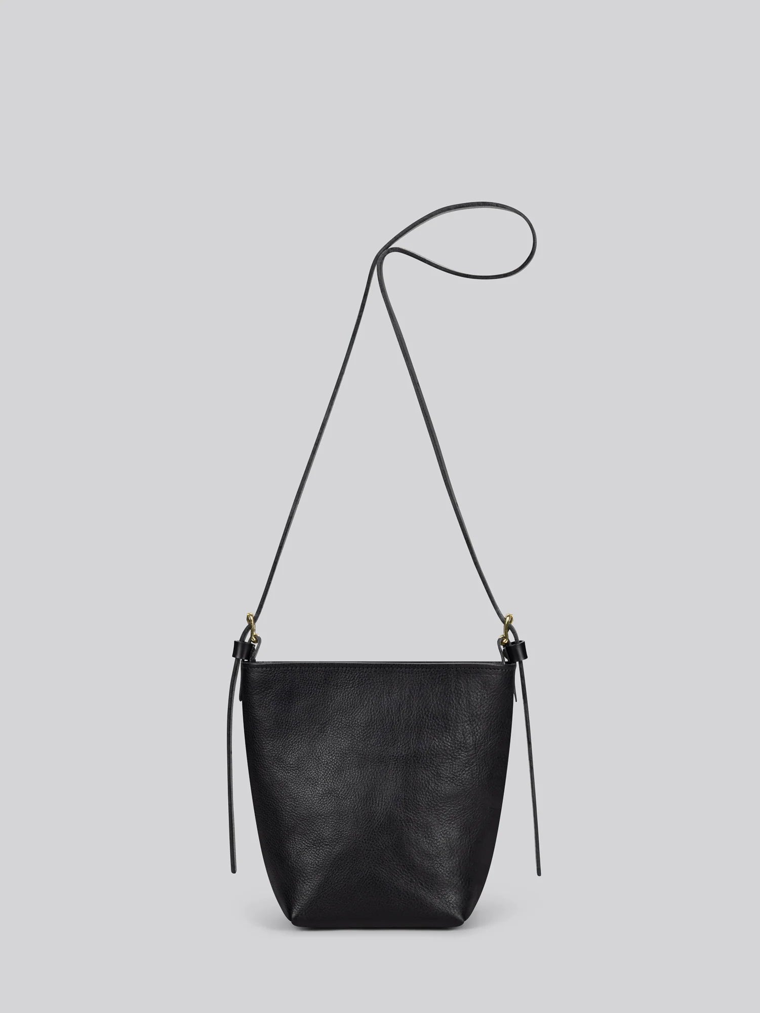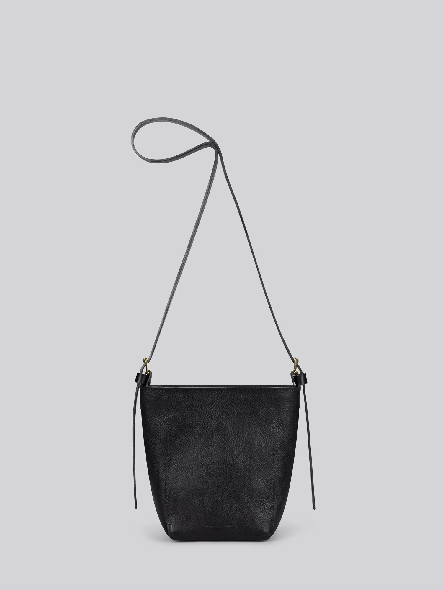 One inside slip pocket. Long, buckled, bridle strap. Brass fittings. Unlined
