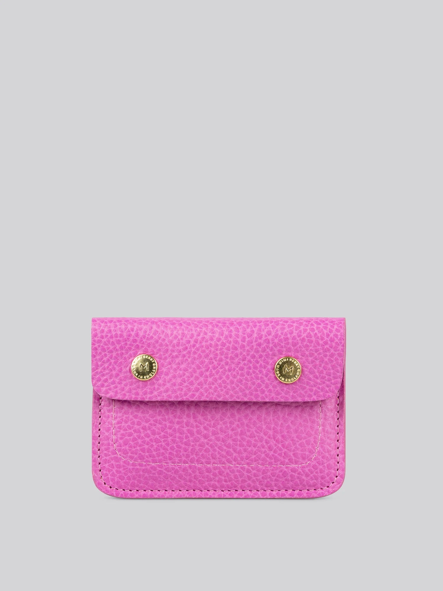 Featuring card slot on the front & one inside compartment. Fastened with our branded brass poppers. Unlined.