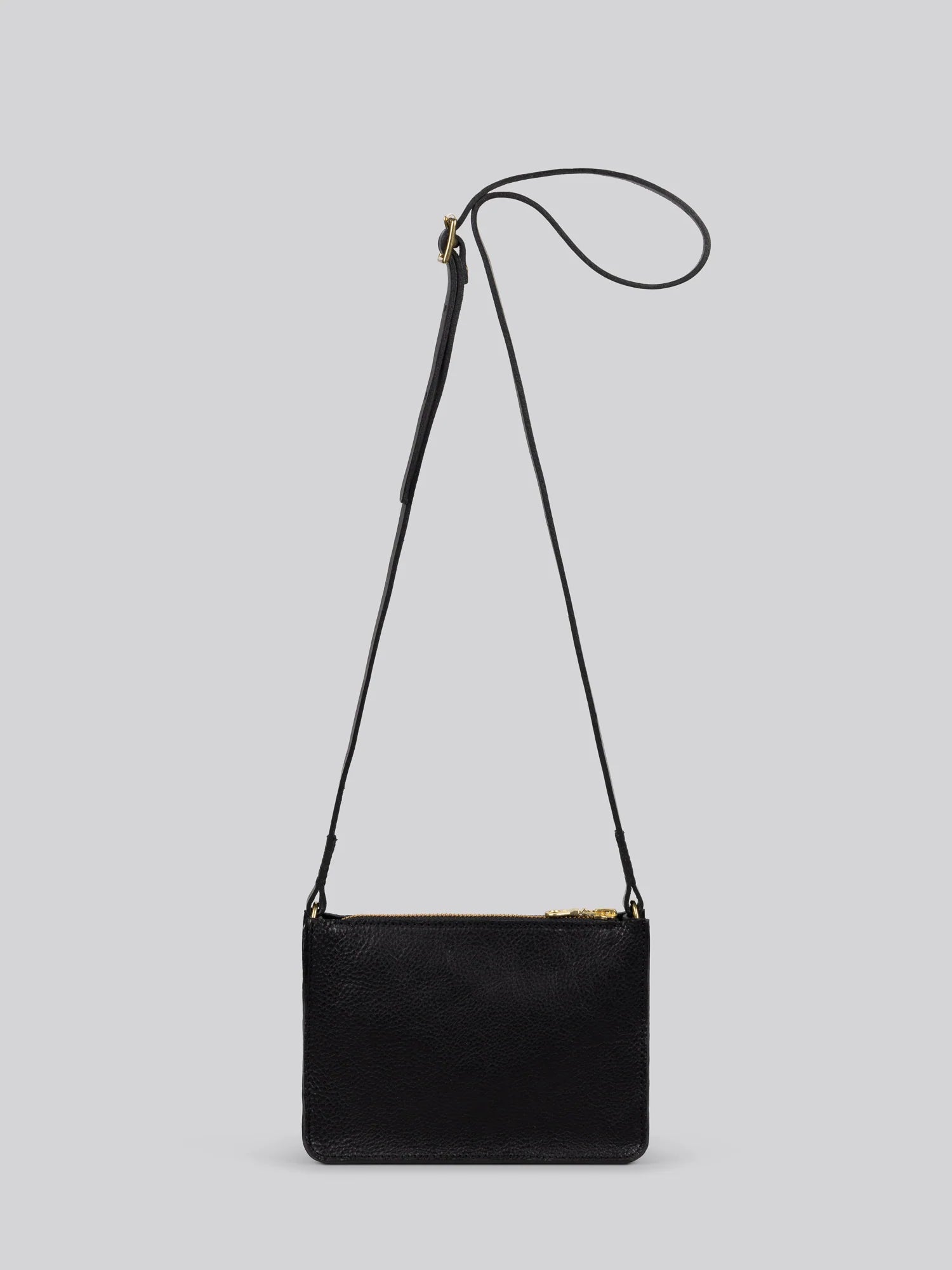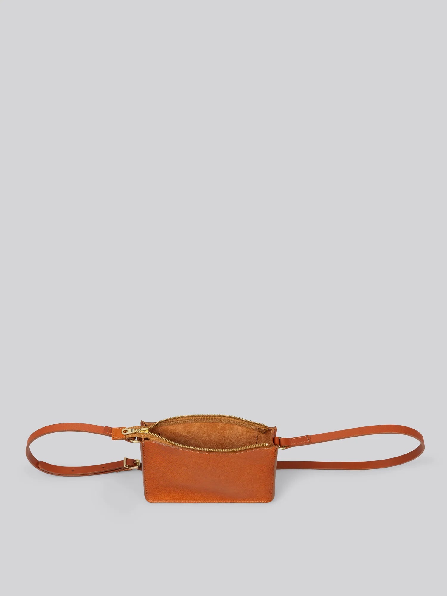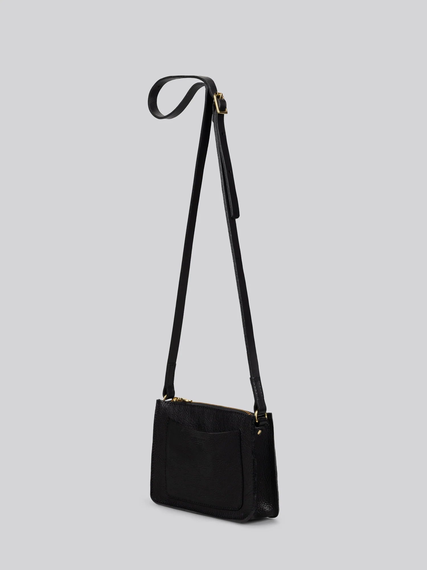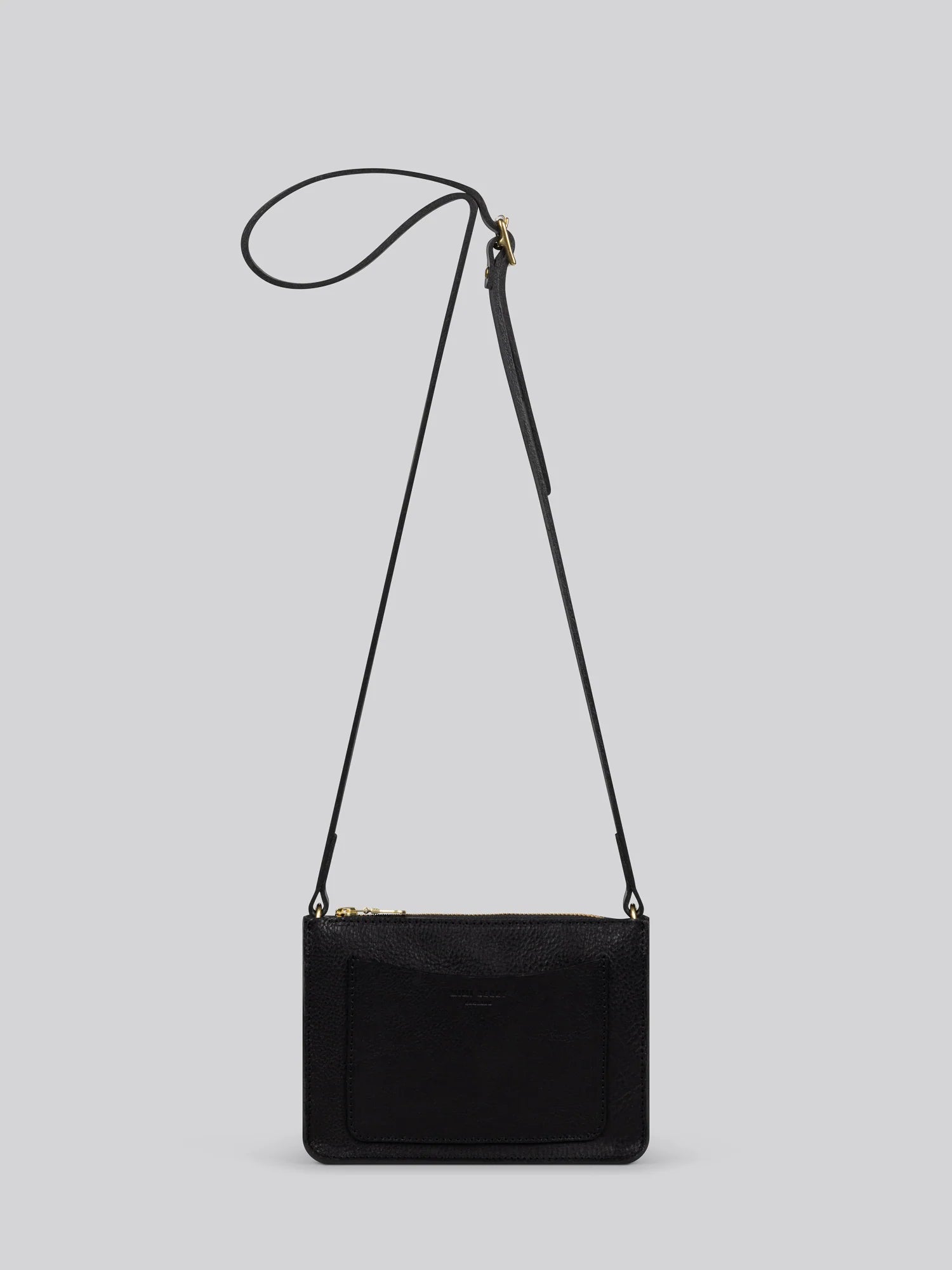 Made from Italian, grainy, veg tanned leather. Long, buckled, bridle strap. One back pocket. Brass fittings. Unlined.